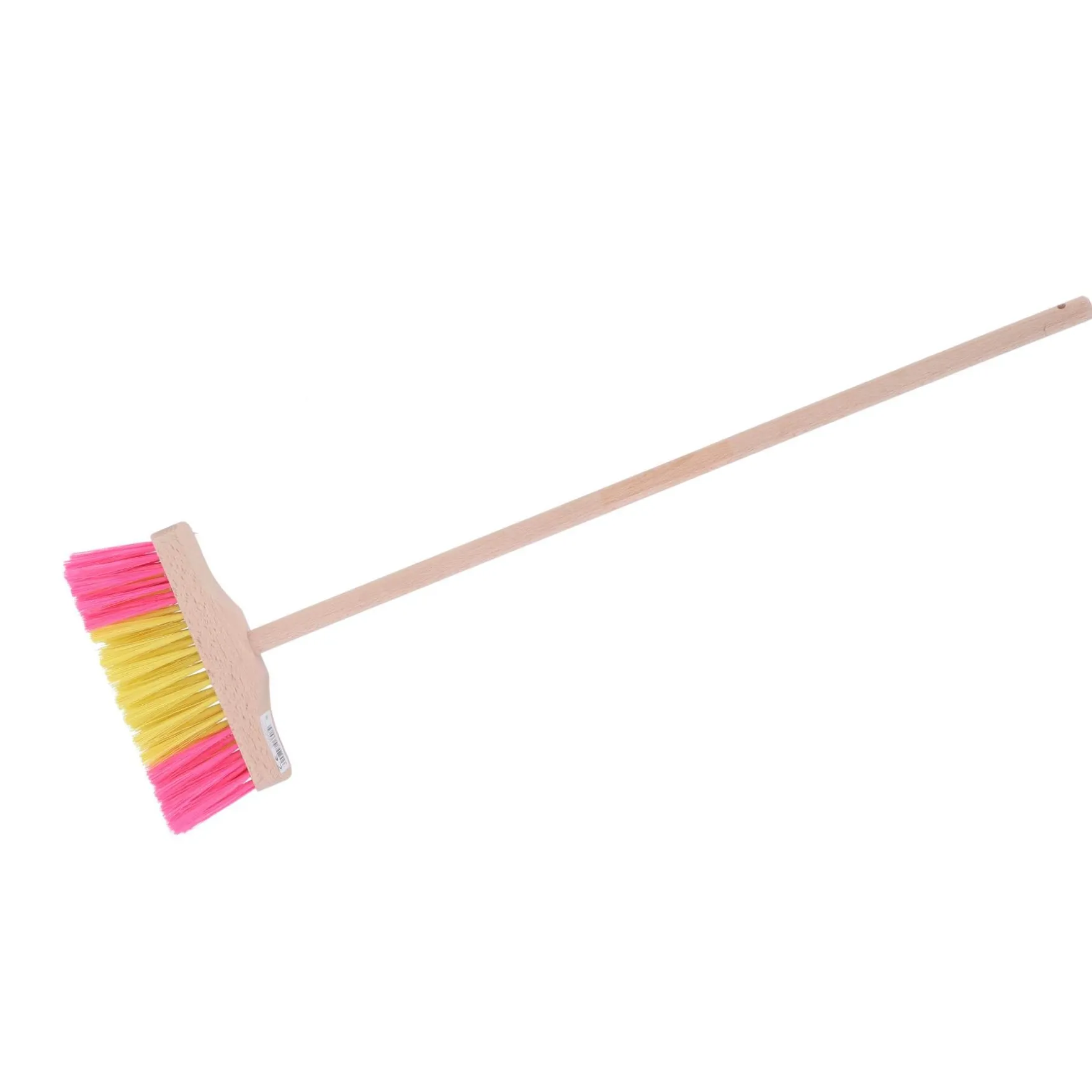 Met deze bezem kan je papa en mama mooi helpen. Je kan al het vuil netjes bij elkaar vegen, zodat het daarna met stoffer en blik (niet inbegrepen) opgeveegd kan worden en in de prullenbak gegooid kan worden. De bezem is van hout en de haren hebben vrolijke kleuren.