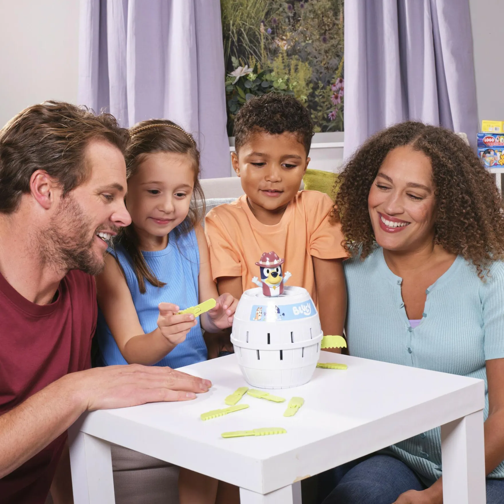 Het Bluey Spel Pop Up is een vrolijk en interactief bordspel dat is geïnspireerd op de geliefde animatieserie Bluey. Dit spel nodigt jonge spelers uit om deel te nemen aan de avonturen van Bluey en haar vrienden terwijl ze verschillende uitdagingen en opdrachten voltooien.