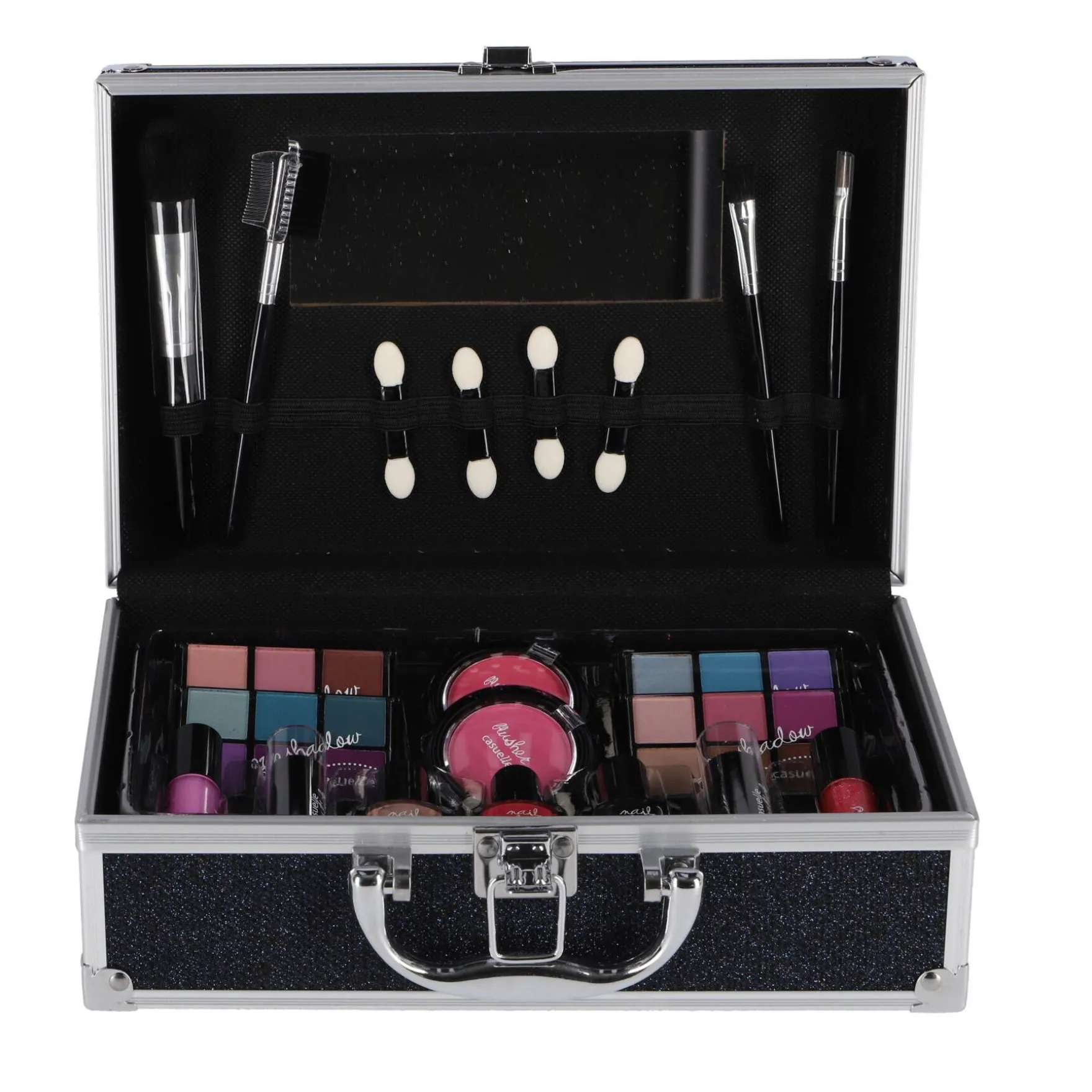 Alles is overzichtelijk georganiseerd, zodat je urenlang kunt genieten van make-upplezier. En als je klaar bent met het creëren van je glamourlook, berg je al je beautygeheimen netjes op in deze chique koffer. Zo blijft je make-up altijd geordend en raak je niets kwijt. Een must-have voor elke make-up liefhebber die graag stijlvol en georganiseerd blijft!