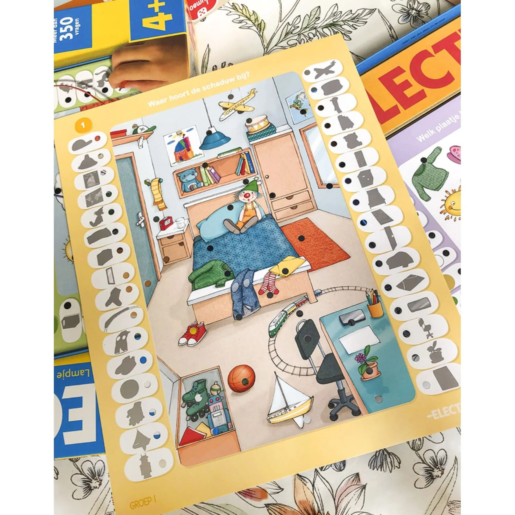 Electro Basisschool Groep 1&2 is eenvoudig en leuk! Met behulp van de rode en blauwe kabels verbind je elke vraag met het juiste antwoord. Als je het juist hebt, zal het lampje vrolijk oplichten. Dit spel bevat 12 grote kaarten met opdrachten die zich richten op verschillende leergebieden voor kleuters: