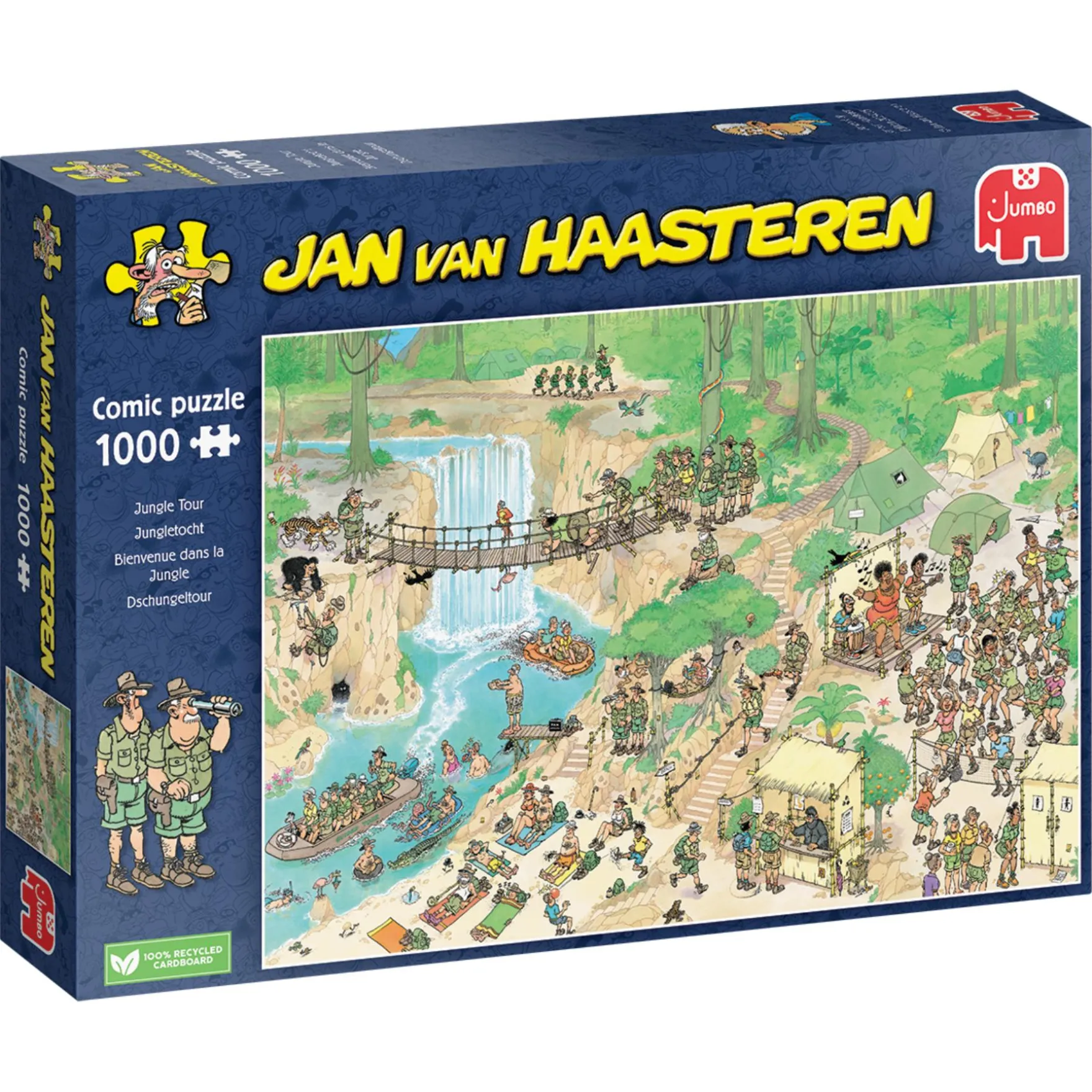 Stap in de knotsgekke wereld van Jan van Haasteren met de Grappige Puzzel Jungletocht van Jumbo, bestaande uit 1000 stukjes! Dit avontuurlijke puzzelontwerp neemt je mee op een hilarische reis door de weelderige jungle, waar de Jan van Haasteren familie de natuur verkent op hun eigen unieke manier.