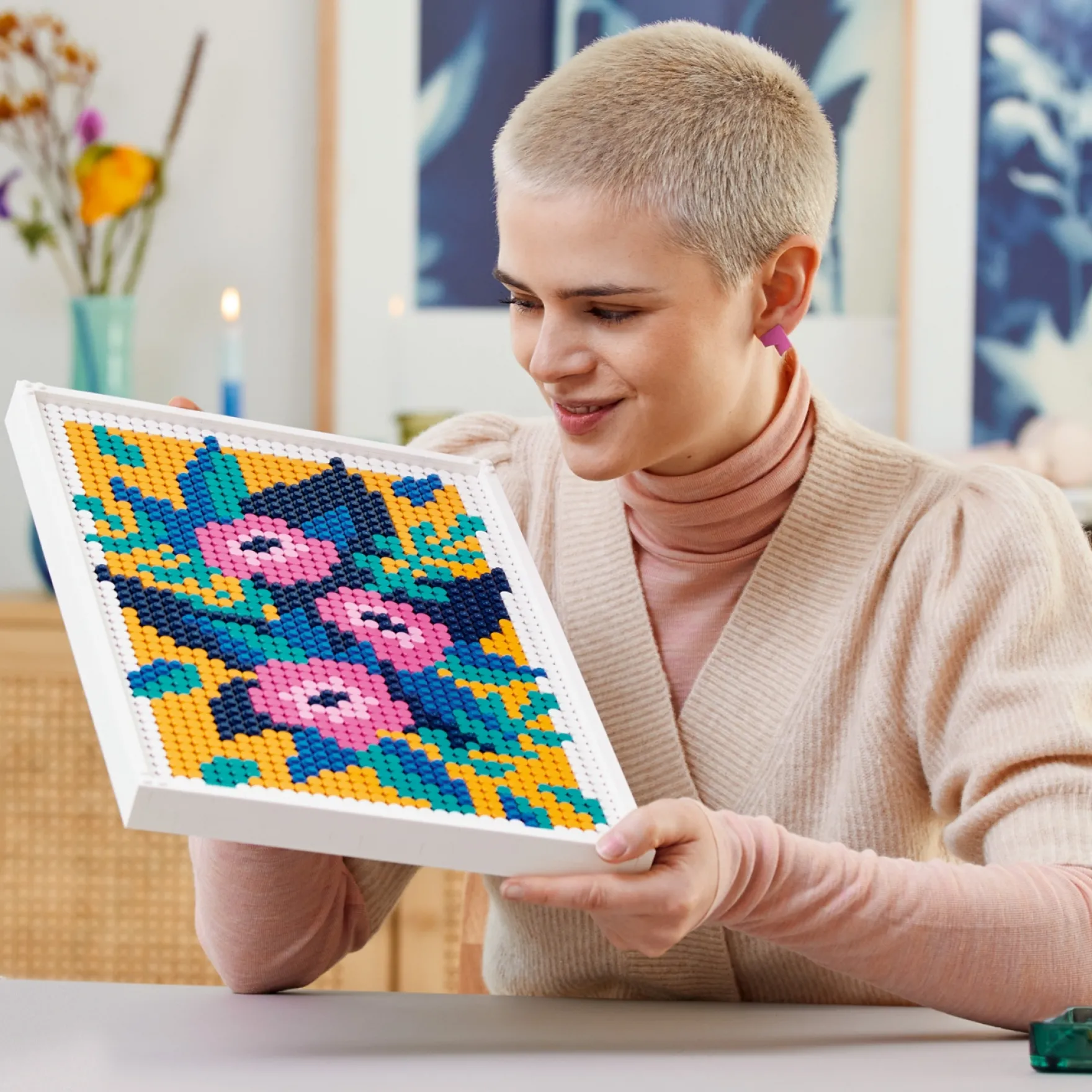• Een passie voor design – combineer jouw liefde voor bloemen en vrolijke kleuren en laat je eigen stijl zien met een LEGO® kunstwerk dat je vol trots kunt ophangen of neerzetten