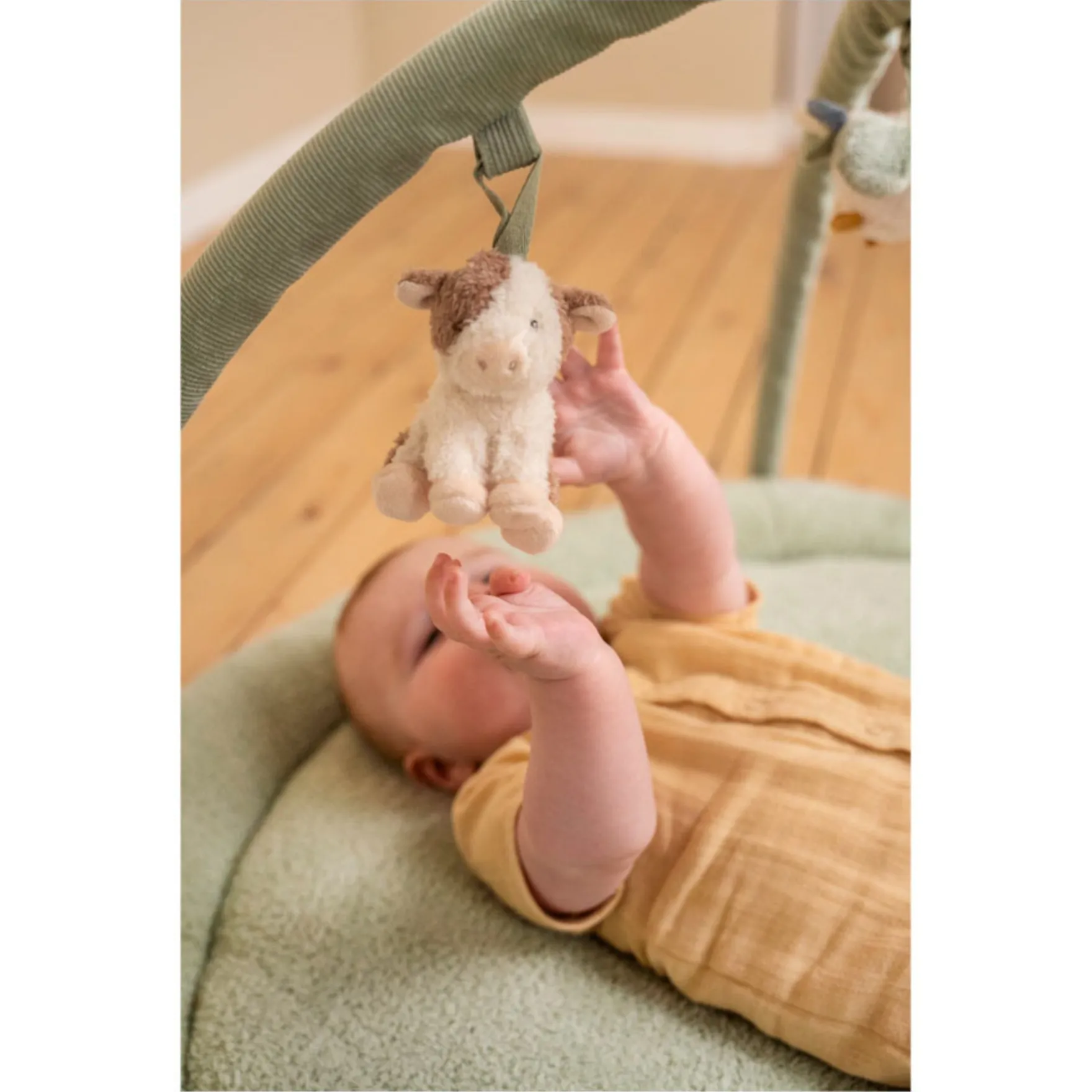 Met twee grote corduroy bogen en 5 schattige knuffeltjes, waaronder een kip, koe, schaap, bloem en schuur, wordt de hand-oogcoördinatie gestimuleerd en de sensorische vaardigheden van je kleintje ontwikkeld.Â