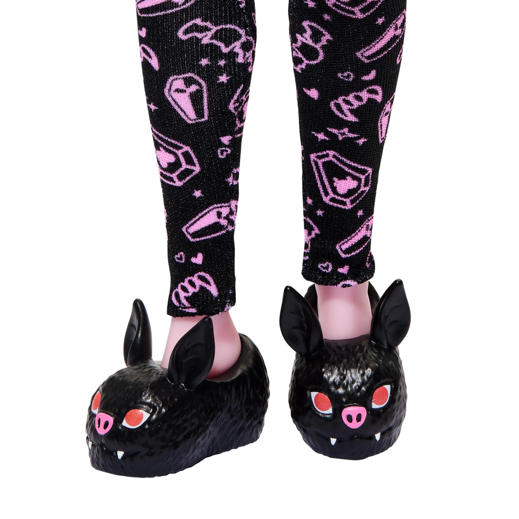Draculaura, gehuld in een fang-tastisch gezellig wollig vest, steelt de show met haar ruimtebroodjes en eigenzinnige oorbellen. Ze brengt haar unieke flair naar het slaapfeestje, compleet met een roze hoofdband met vleermuisoortjes en griezelige vleermuisslippers. Haar trouwe metgezel, Count Fabulous, rust comfortabel uit in zijn eigen harige, doodskistvormige bedje.