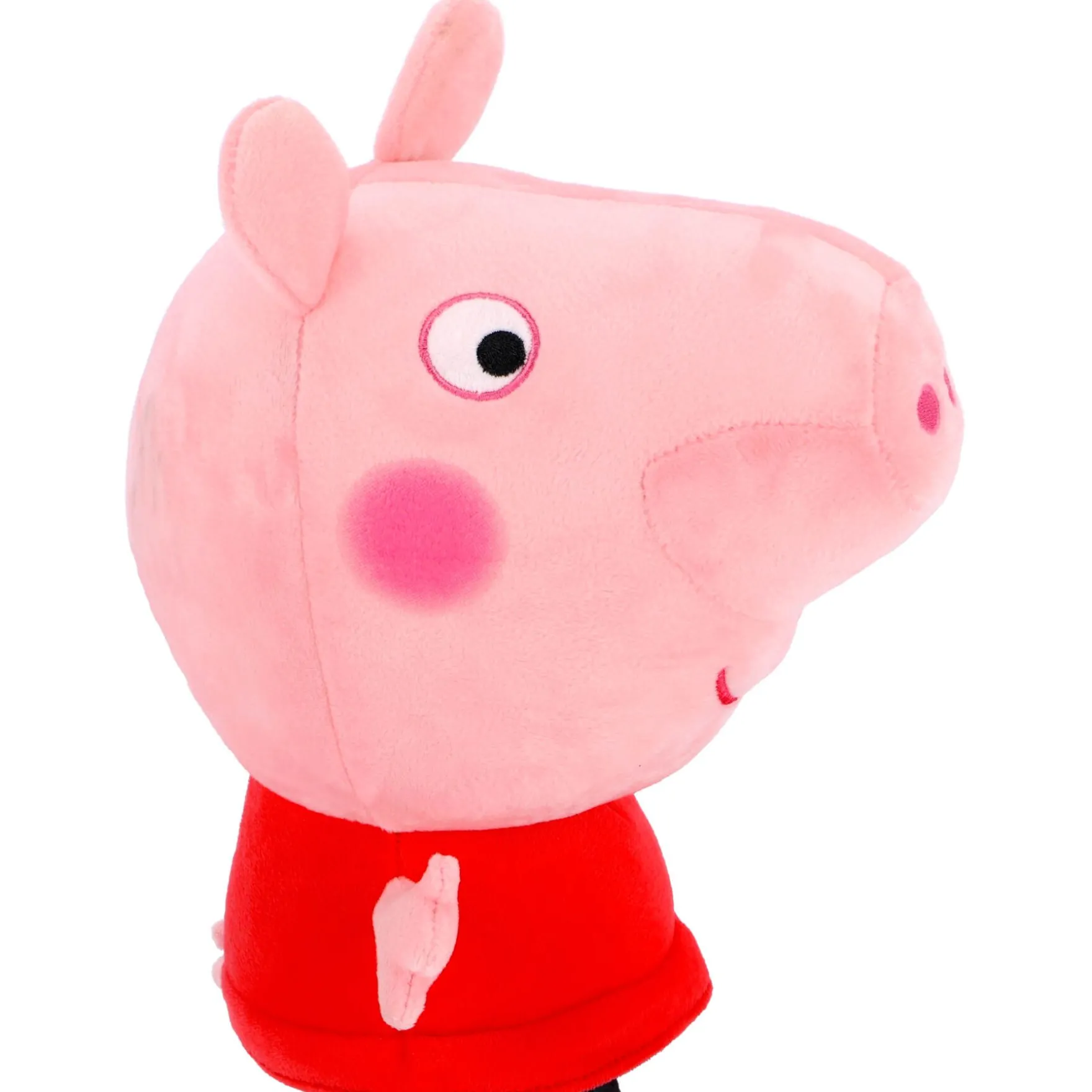 Peppa staat klaar voor avontuur in haar iconische jurk, met haar grote glimlach en sprankelende ogen. Ze is precies zoals je haar kent en liefhebt van de populaire Peppa Pig-serie. Deze knuffel is de perfecte maat – niet te groot, niet te klein, maar precies 30 cm groot – zodat kinderen en volwassenen haar overal mee naartoe kunnen nemen.