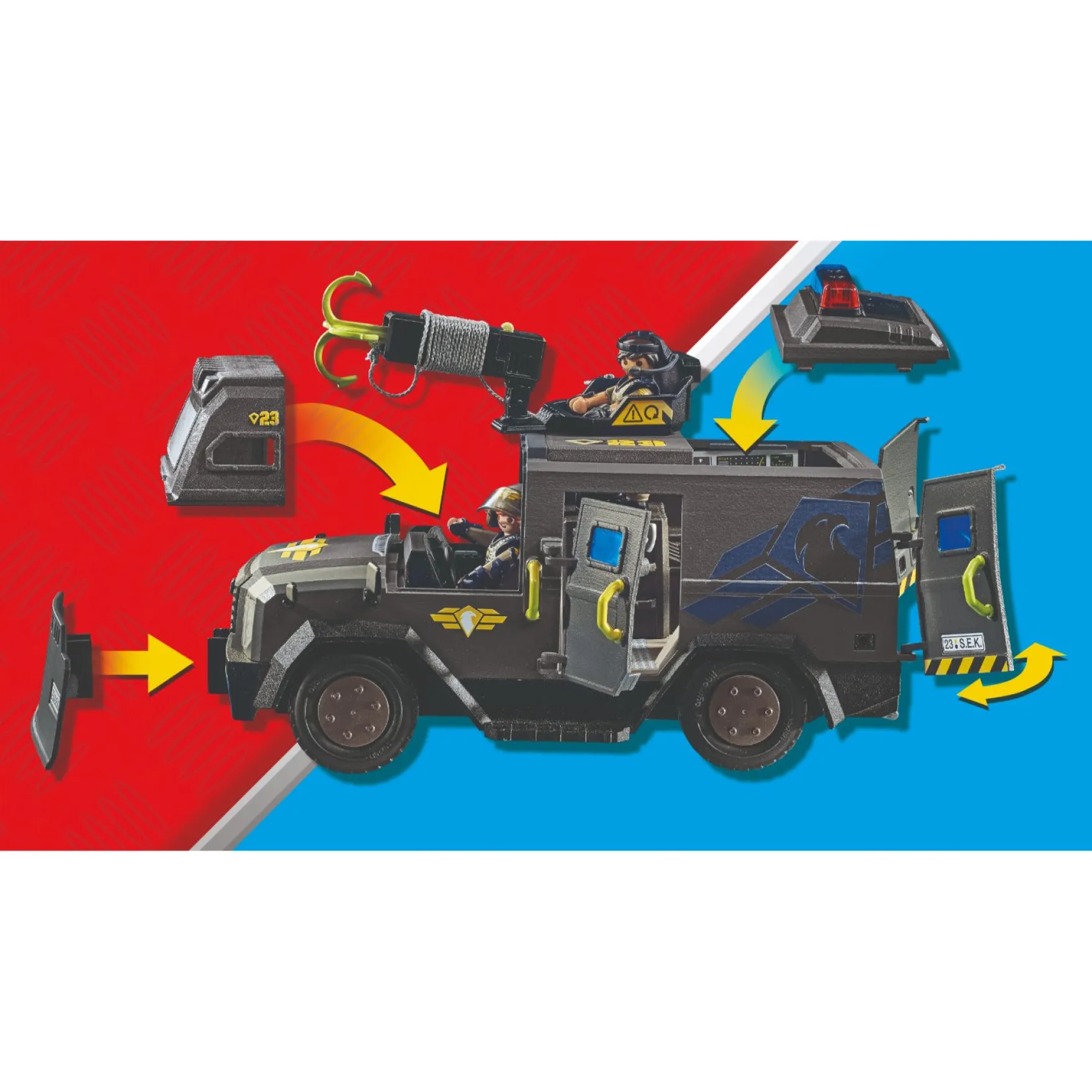 Kinderen vanaf 5 jaar zullen genieten van deze moderne en robuuste speelset en kunnen zich volledig inleven in de wereld van de PLAYMOBIL-politie. Ideaal als cadeau voor actie-liefhebbende kinderen! Ga op pad met de Tactical Unit en maak je klaar voor avontuurlijke reddingsoperaties en spannende achtervolgingen!