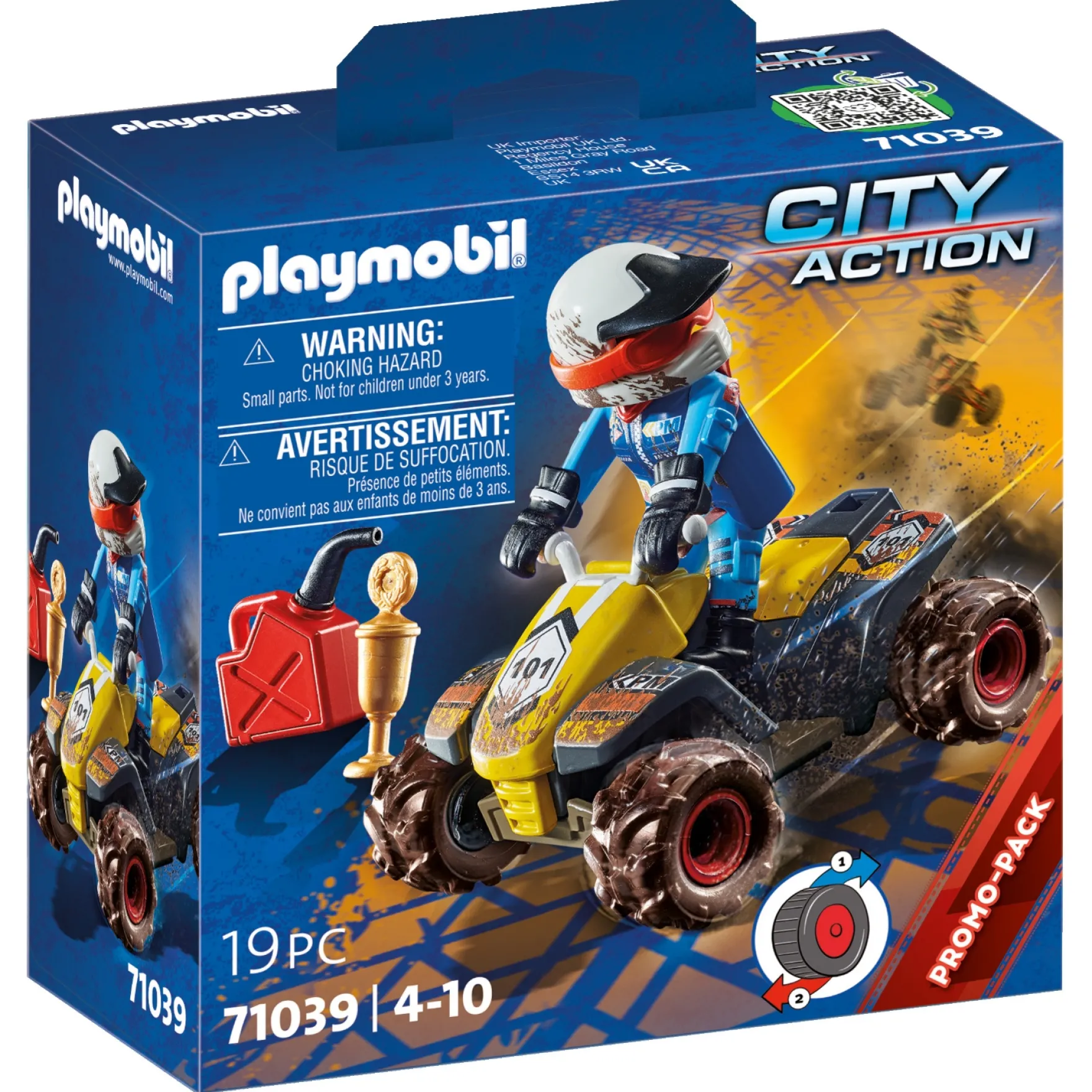 Playmobil City 71039 Off/Road Quad is een 19-delige speelset, geschikt voor kinderen vanaf 4 jaar.