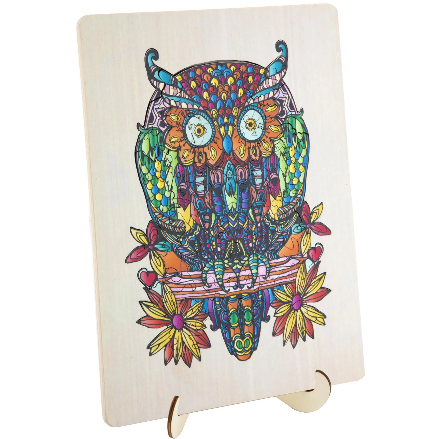 Ga op een kleurrijk avontuur en laat je verbeelding vliegen met onze Houten Uil Puzzel – een prachtige toevoeging aan elke puzzelcollectie!