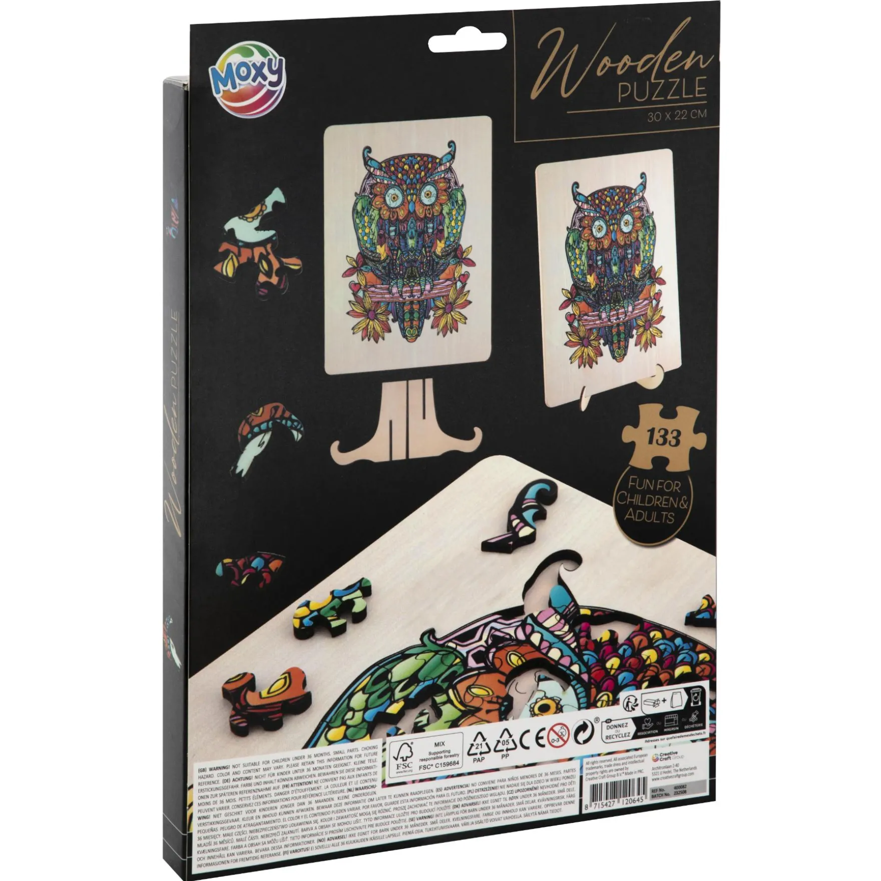 Laat je creativiteit de vrije loop terwijl je de stukjes op hun plek legt en zie hoe de uil langzaam vorm krijgt. Met een afmeting van 30×22 cm is deze puzzel perfect voor een ontspannende middag vol plezier.