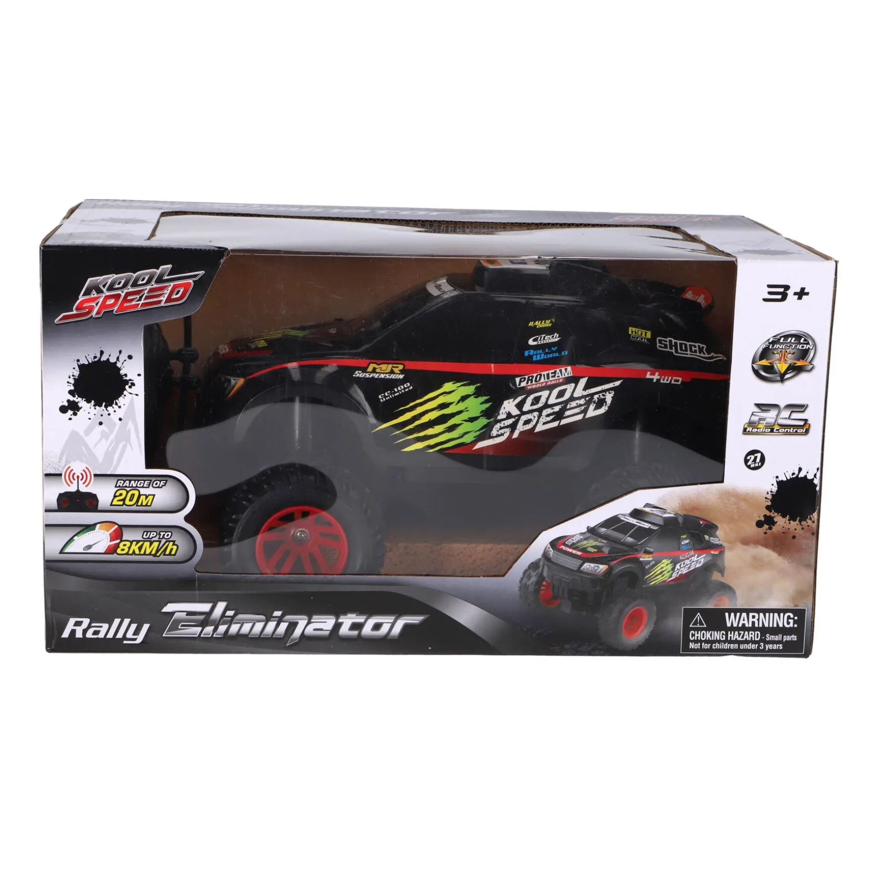 Met een indrukwekkende speeltijd van 20 minuten en een maximale snelheid van 8 km per uur, is deze auto helemaal klaar om jouw race-avonturen tot leven te brengen. Of je nu door de straten scheurt of off-road terrein verkent, de Koolspeed Rally Eliminator staat garant voor urenlang speelplezier.