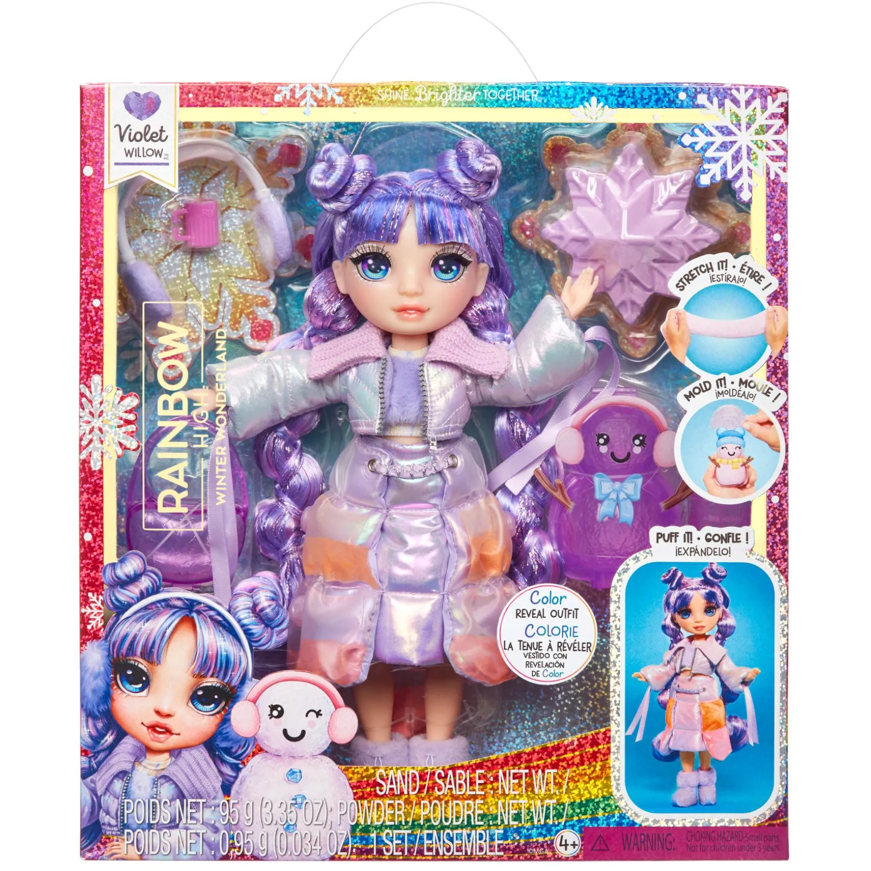 De Rainbow High Winter Wonderland Doll in paars is een betoverende pop die de winterse magie tot leven brengt. Deze prachtige pop heeft een gedetailleerde paarse outfit, compleet met glinsterende accenten, winterse accessoires en een unieke uitstraling die haar een echte blikvanger maakt. De Winter Wonderland Doll is ontworpen met veel aandacht voor mode en details, waardoor ze een must-have is voor verzamelaars en jonge fans van de Rainbow High-serie.