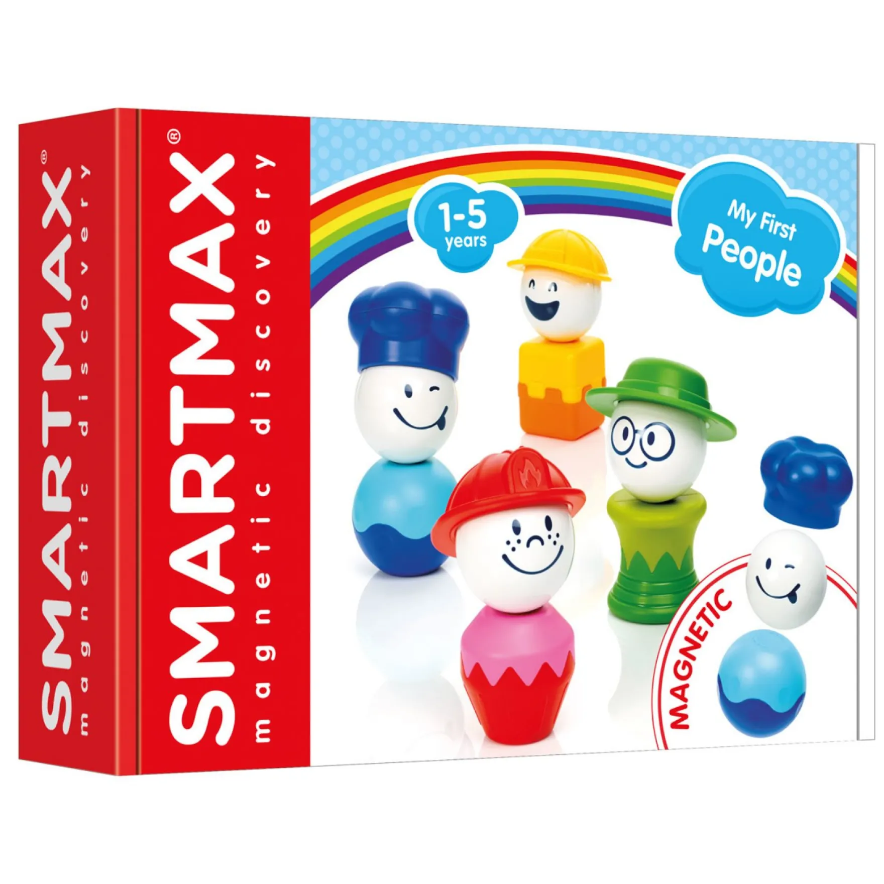 Smartmax My First People is ontworpen met de veiligheid van jonge kinderen in gedachten. De onderdelen zijn extra groot en stevig, zodat ze gemakkelijk vast te houden zijn en niet ingeslikt kunnen worden. Het magnetische systeem is ook veilig en kindvriendelijk.