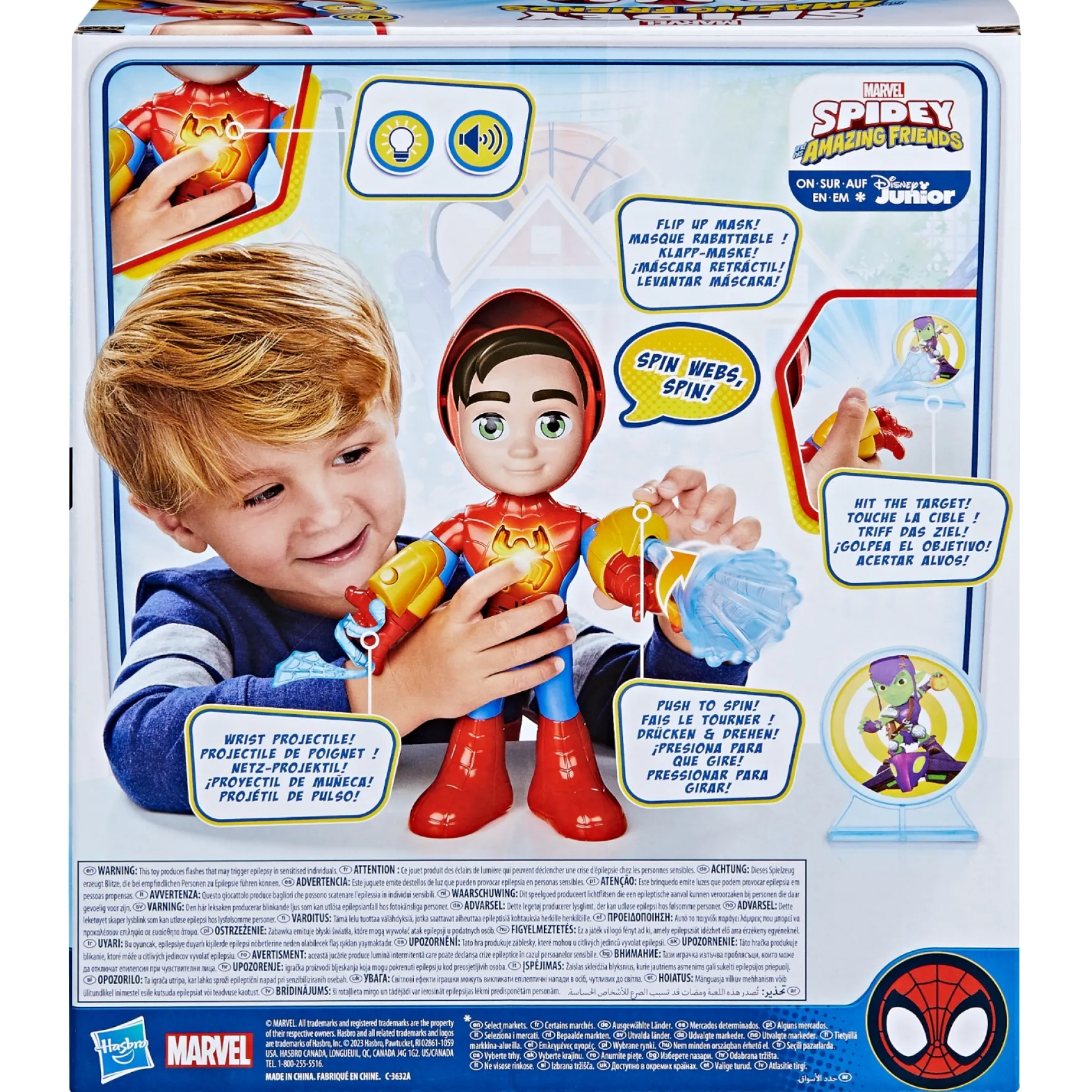 Stel je eens voor dat je slechteriken verslaat terwijl je het staande Green Goblin-doelwit gebruikt voor interactieve web-blast actie! Marvel’s Spidey and His Amazing Friends speelgoed is een fantastisch cadeau voor jongens en meisjes vanaf 3 jaar. Of het nu een verjaardag, vakantie of gewoon zomaar is, dit speelgoed brengt een lach op hun gezicht. (Elk afzonderlijk verkocht. Onder voorbehoud van beschikbaarheid.) Dompel jezelf onder in het avontuur en beleef samen met Spidey en zijn vrienden onvergetelijke momenten van opwinding en plezier!