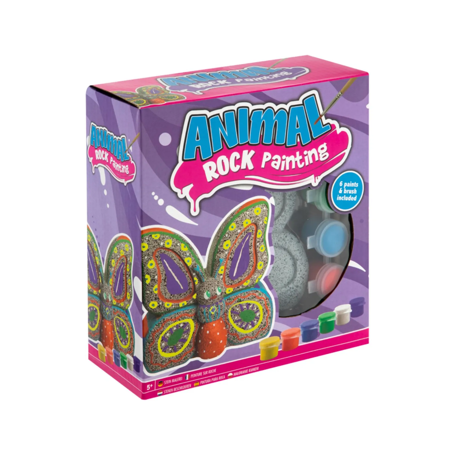 In de verpakking zit een mooie vlinder, gemaakt van steen. Ook krijg je er 6 verf kleuren en een penseel bij. Gebruik je creativiteit om een schitterend ontwerp te maken en deze vervolgens te verven op de vlinder. Stippen, strepen, bloemen, de keuze is aan jou.