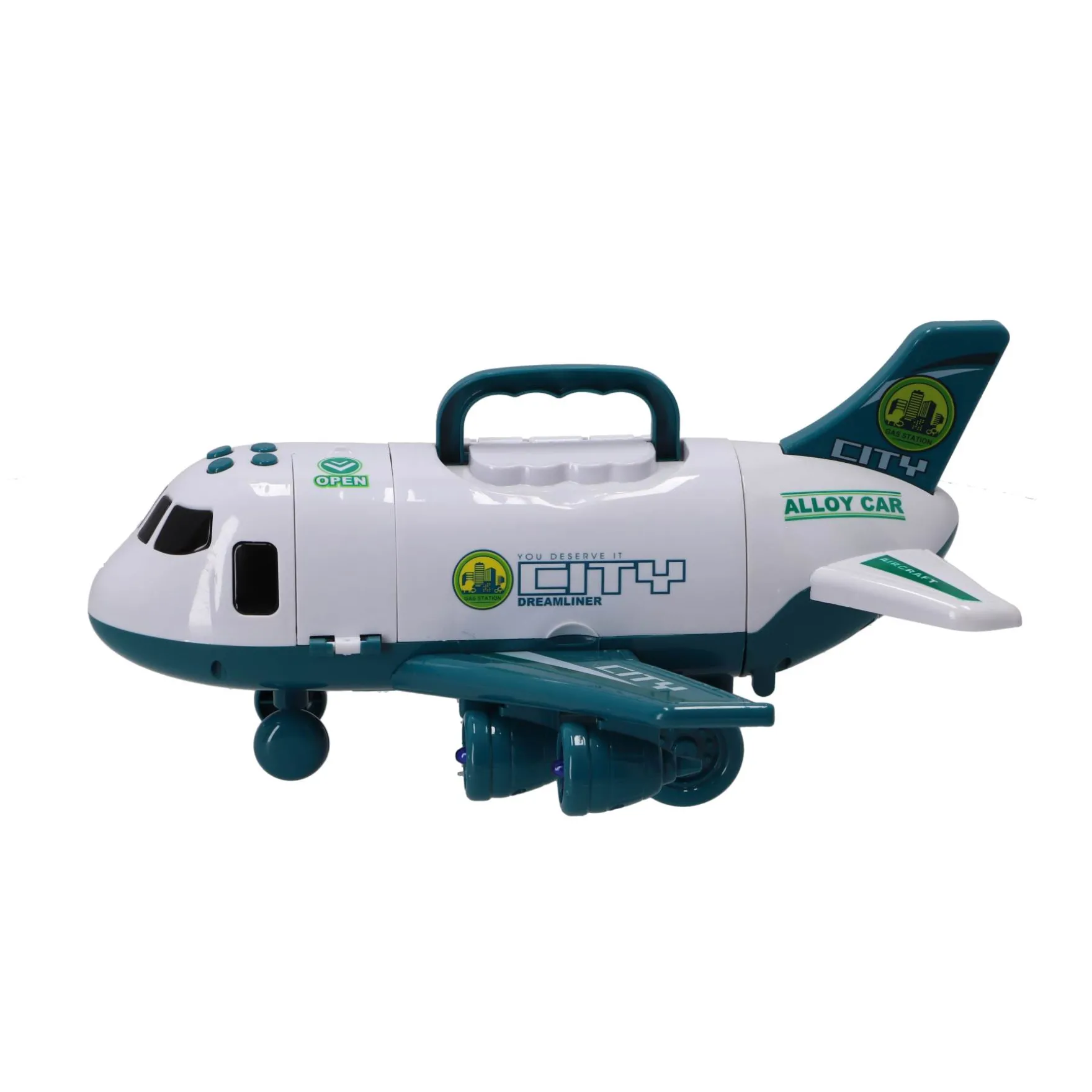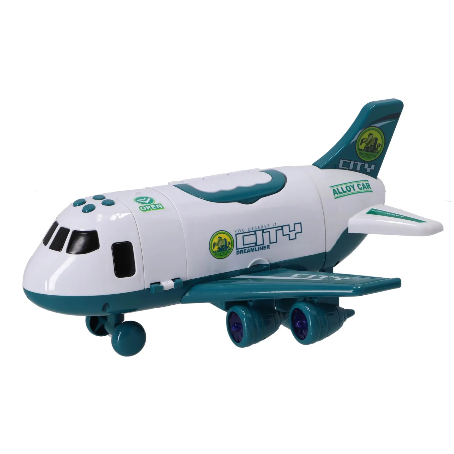 Open de City Dreamliner en ontdek de ruime opbergruimte binnenin, perfect voor het meenemen van kleine auto’s of andere speelgoedartikelen. Met een handig trapje voor de piloot, kunnen kinderen zich voorstellen dat ze de wereld rondvliegen en spannende avonturen beleven.