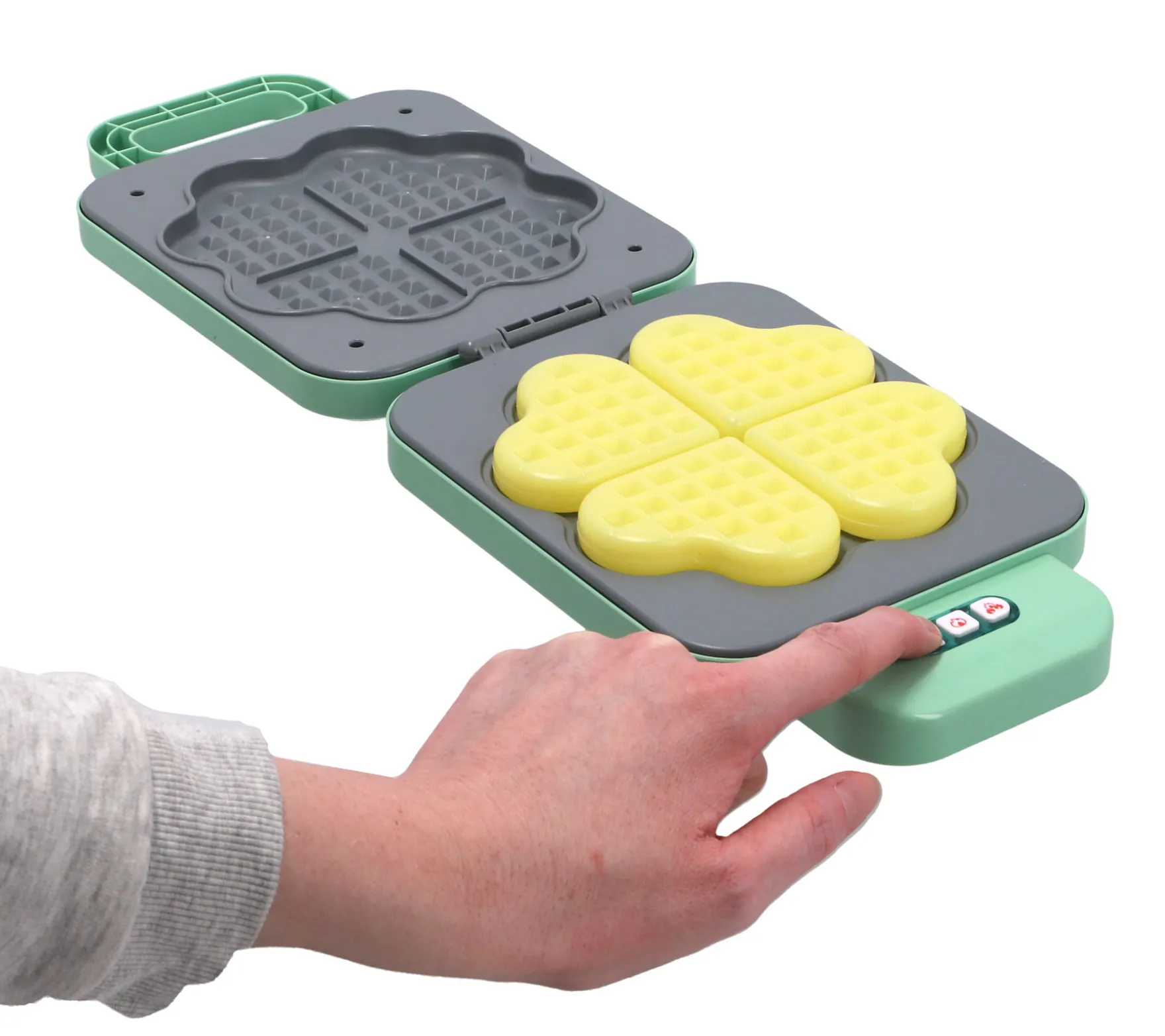 De set wordt geleverd met 4 hartvormige wafels die van kleur veranderen wanneer ze “gebakken” worden in de wafelmaker, wat zorgt voor een magische en interactieve ervaring.
