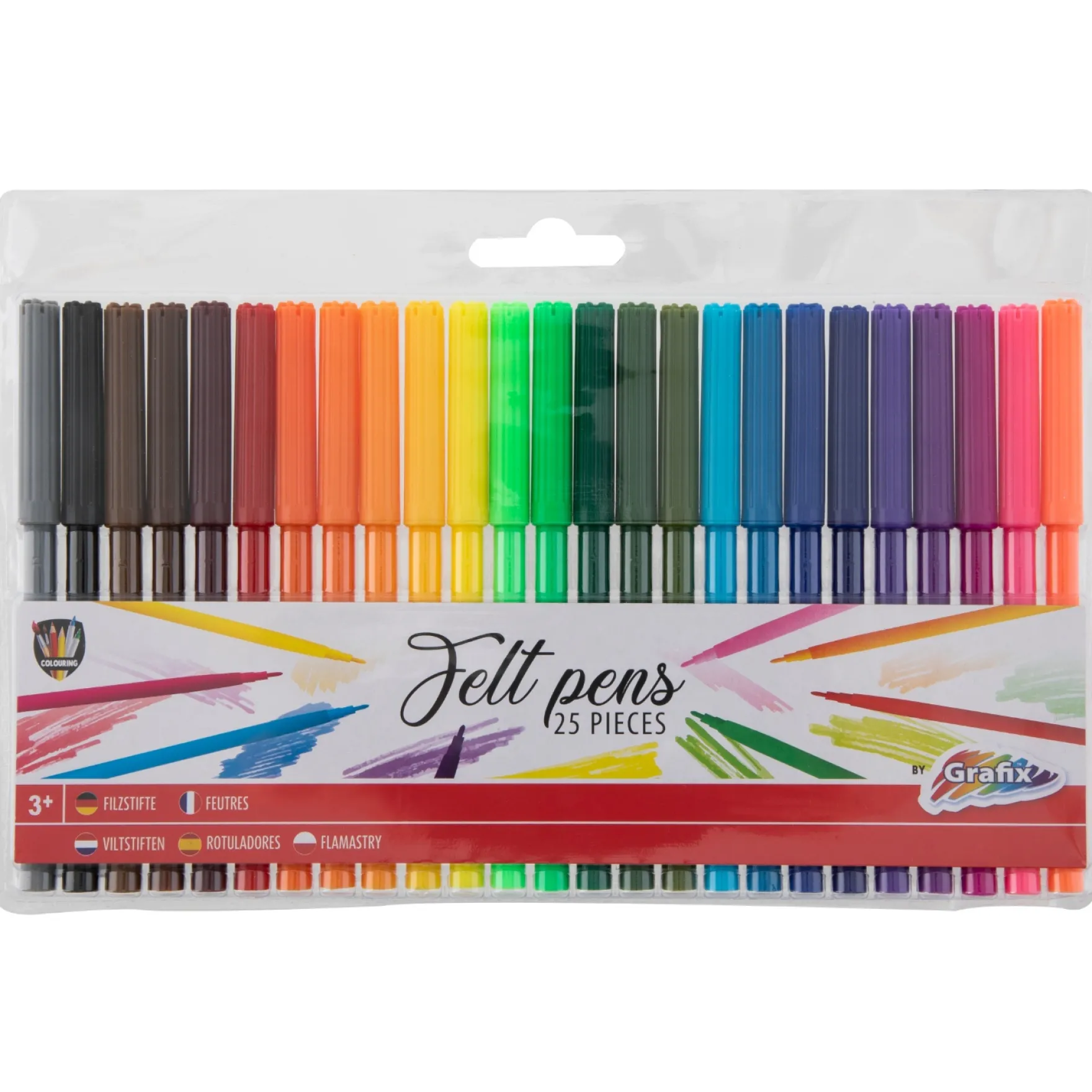 Breng kleur in de creativiteit van je kinderen met deze set van 25 viltstiften in diverse kleuren! Perfect voor tekenen, kleuren en knutselen, deze viltstiften bieden eindeloze mogelijkheden voor jonge kunstenaars.