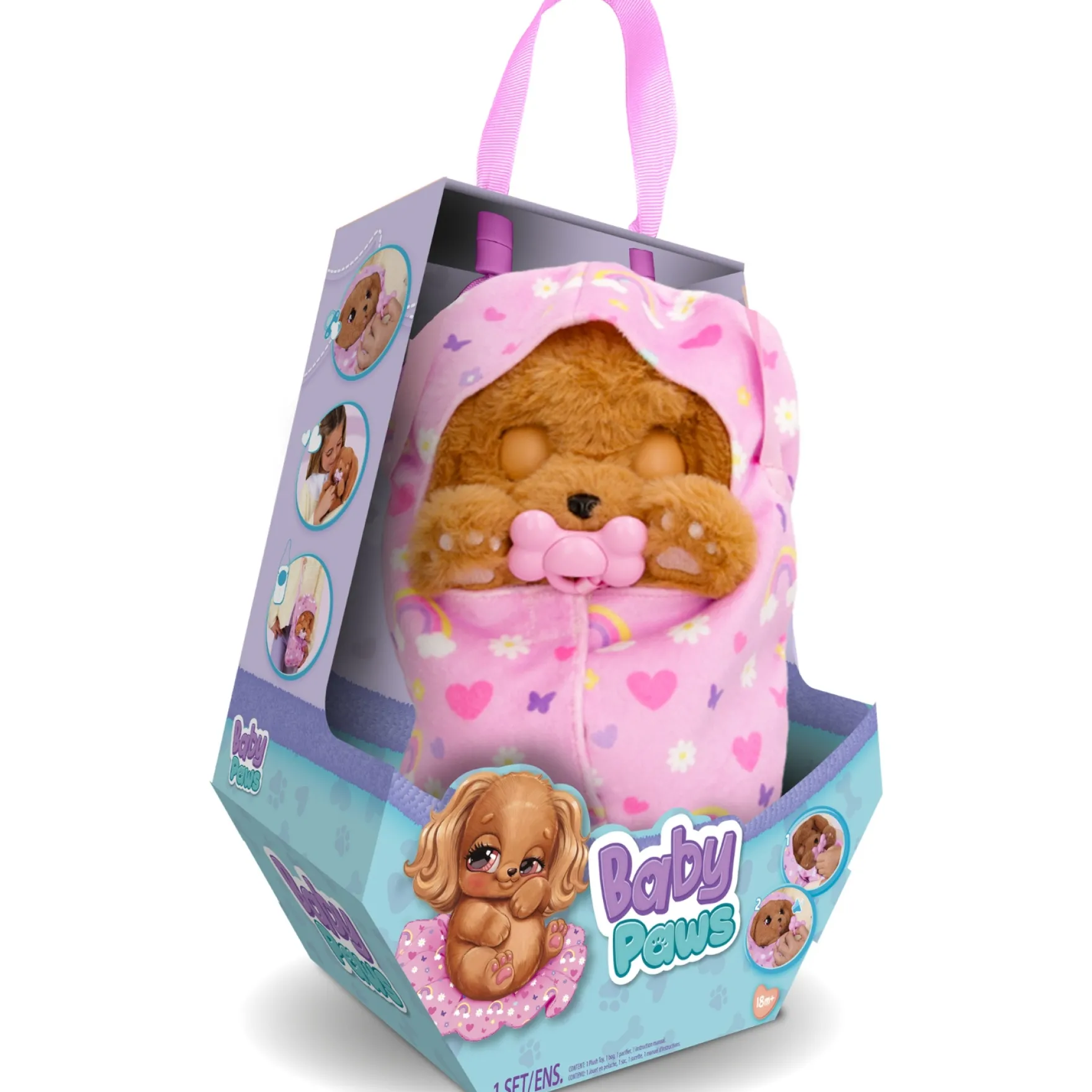Het dekentje heeft een handig hengsel, zodat je Cocker overal mee naartoe kunt nemen. En er is nog meer plezier met de gratis ‘Baby Paws’ app, waar je het paspoort van jouw Baby Paws kunt invullen en allerlei interactieve functies hebt om je puppy te voeren en te verzorgen. Met begeleiding van een virtuele dierenarts kun je verschillende minigames spelen en leren hoe je voor je nieuwe puppy moet zorgen. Baby Paws Cocker wordt jouw nieuwe beste vriendje!