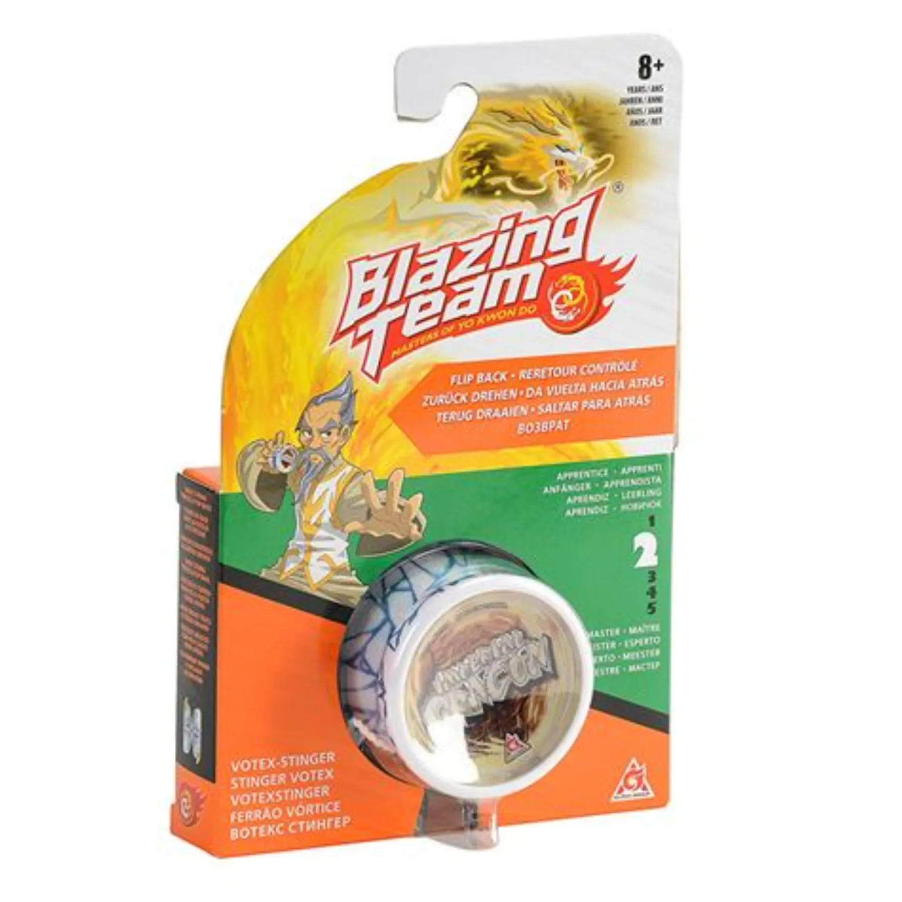 Omhoog, omlaag, en achterover. De Blazing Team Yoyo Votex Stinger Imperial Dragon is erg leuk en gemakkelijk om mee te spelen door het Auto-retour spelmechanisme. Met de gave blauwe kleur en het Imperial Dragon design is het niet alleen leuk om mee te spelen maar ziet het er ook erg cool uit. Ontdek welke trucjes je er allemaal mee kan doen. Geschikt voor kinderen vanaf 8 jaar.