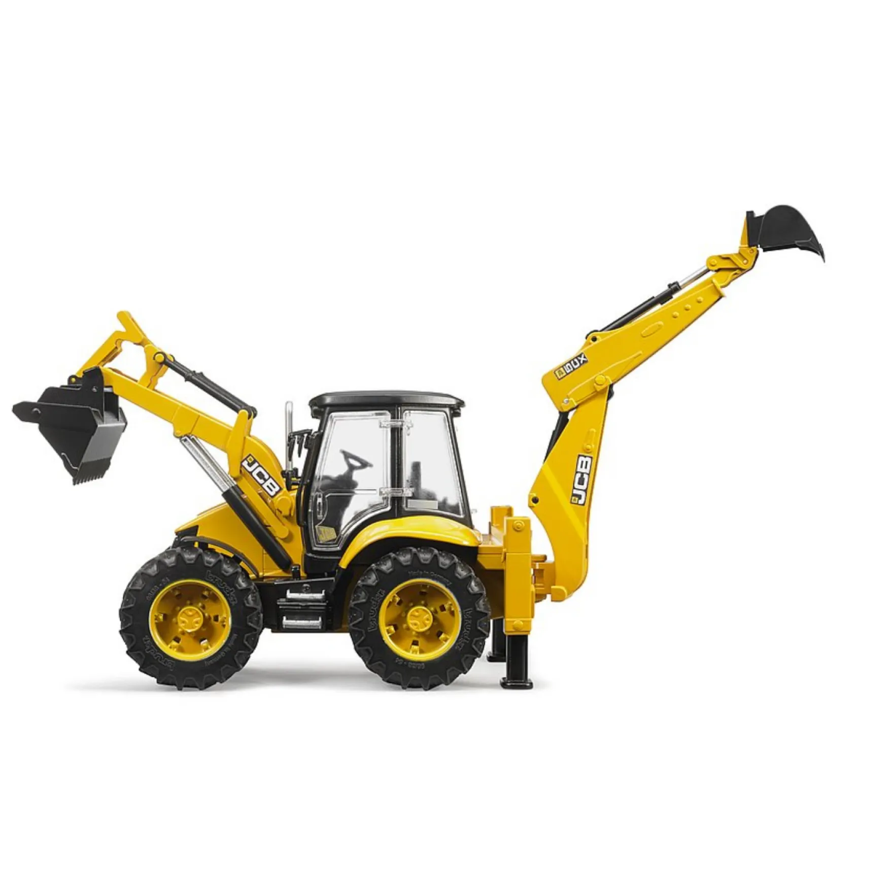 Met de JBC 5CX tractor met graafarm van Bruder kun je allerlei werkzaamheden uitvoeren. Voorop zit een lepel, waarmee je van alles kunt vervoeren. Achterop zit een graafarm, waarmee je allerlei graafwerkzaamheden uit kan voeren. Door de twee steunpoten te gebruiken blijft de JBC 5CX stevig staan als je aan het werk bent. De lepel kan je vervangen door andere werktuigen (niet inbegrepen). Door de profielbanden heeft de JBC 5CX een goede grip.