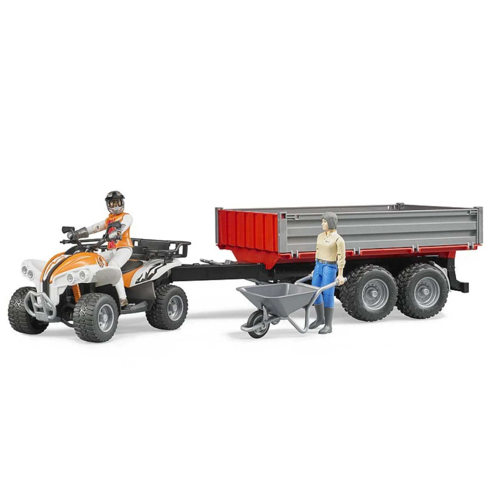 Op deze quad van BRUDER kun je heerlijk rondscheuren. Quads worden steeds populairder bij bosbouw, op de boerderij op bouwplaatsen en om leuke dingen mee te doen, en dat is ook niet zo gek: Een quad combineert de geweldige ervaring van het rijden op een motor met de flexibiliteit van een off-road voertuig. Een quad kun je dus ook goed gebruiken op jouw boerderij of bouwplaats of in de bosbouw. En in je vrije tijd kun je er lekker mee in de stad rijden of door de natuur crossen natuurlijk.