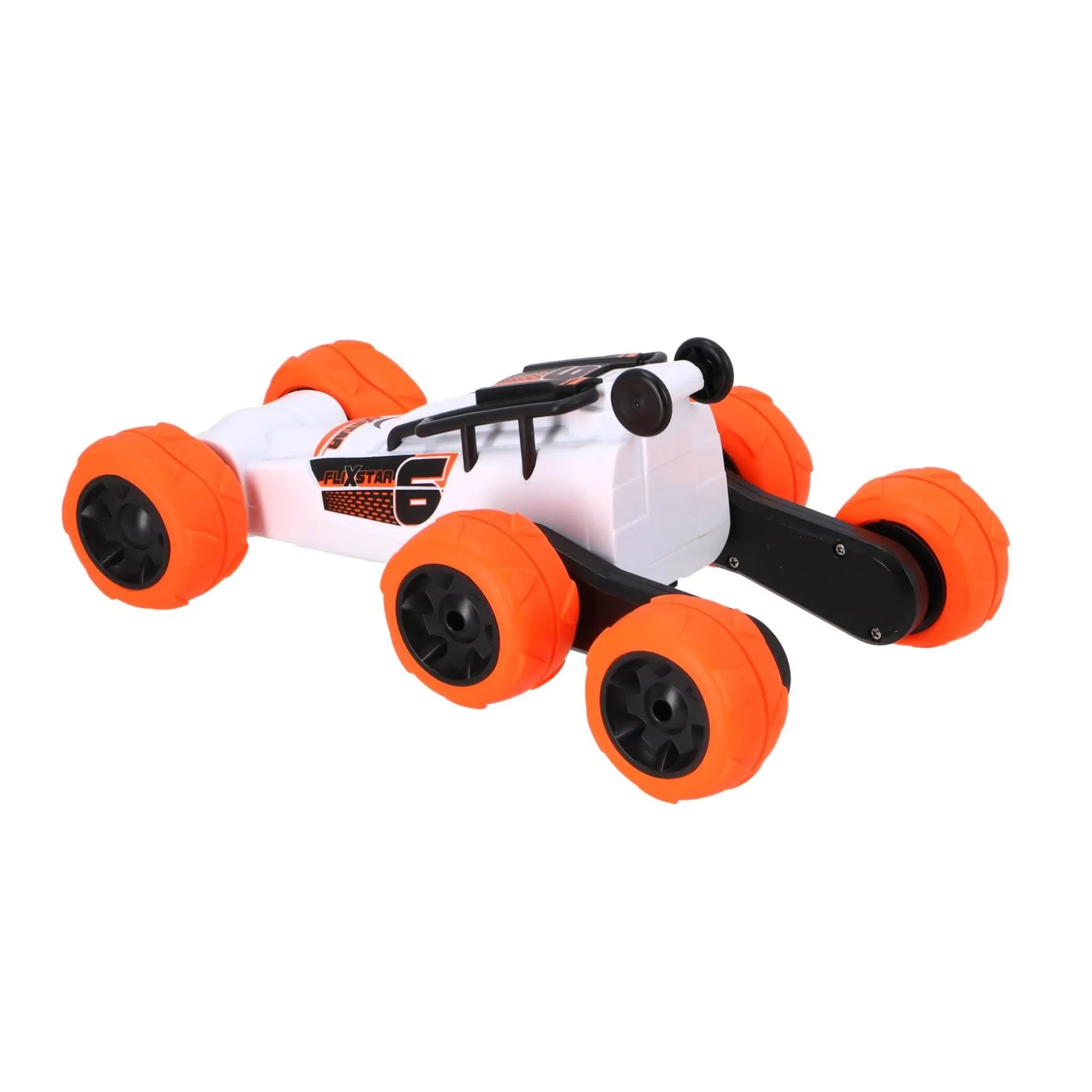 - Stuntmogelijkheden: Dankzij de extra wielen is de Flix Star in staat tot indrukwekkende stunts. Laat hem draaien, kantelen en over obstakels springen voor extra speelplezier.