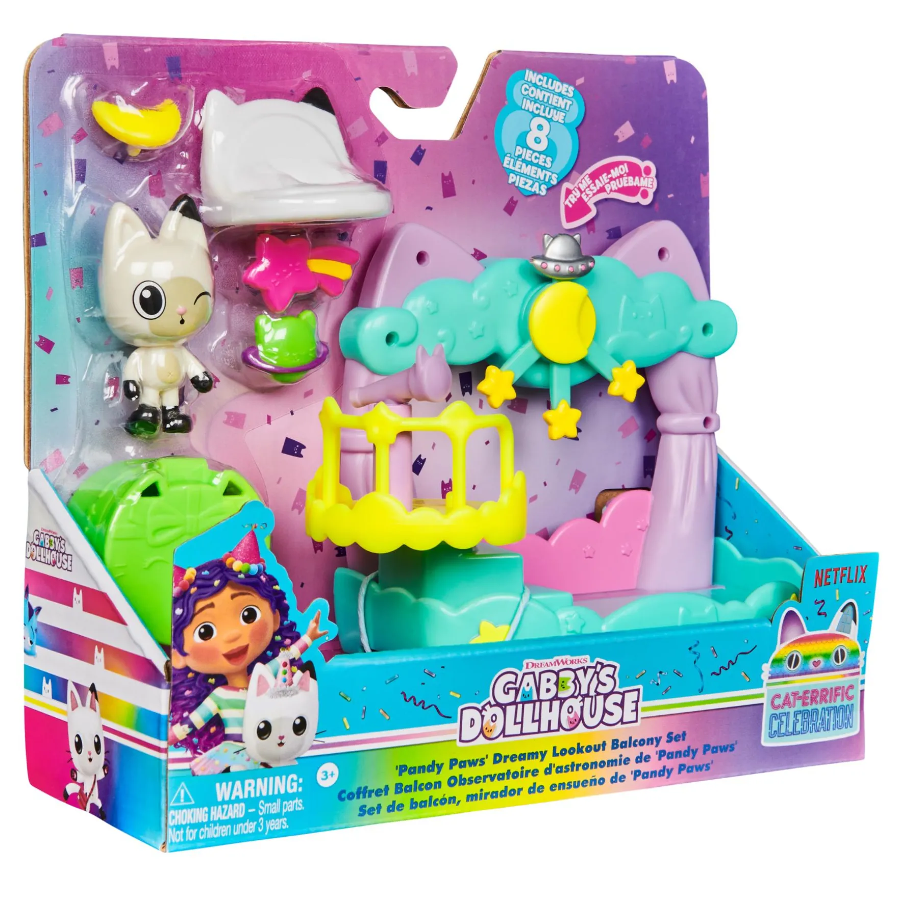 Perfect voor kinderen vanaf 3 jaar, deze speelset stimuleert fantasierijk spel en creativiteit. Laat je kind het poppenhuis verkennen en elke dag een nieuw avontuur beleven met Gabby’s Poppenhuis Balkon Pandy Speelset!