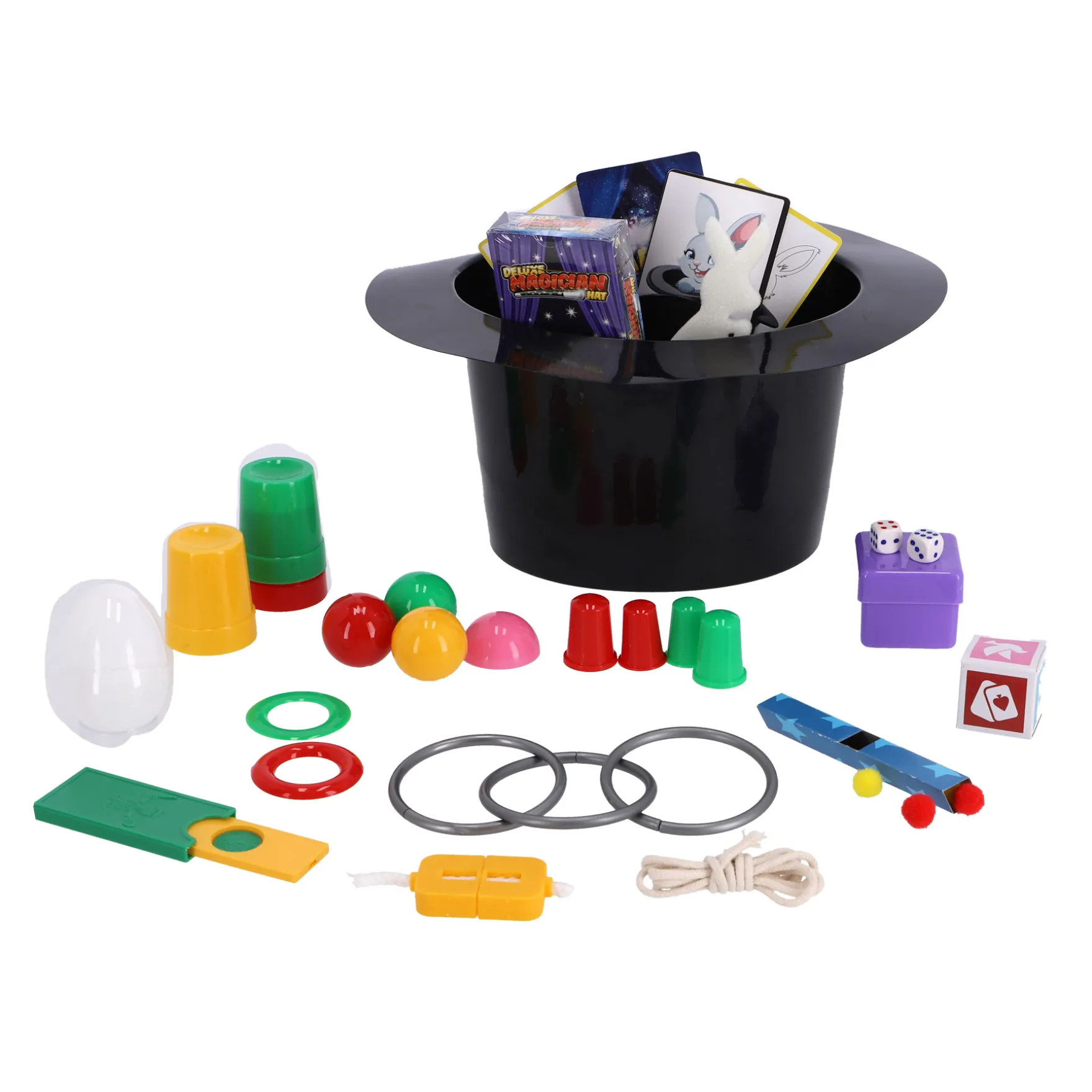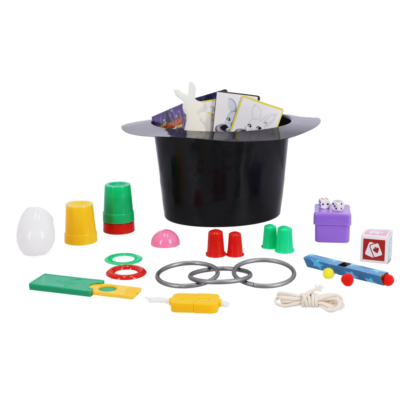 De set bevat een stijlvolle goochelhoed, toverstaf en een reeks accessoires waarmee je eenvoudig en stap voor stap trucs kunt leren. De duidelijke instructies maken het perfect voor beginners en jonge goochelaars, terwijl ook ervaren magiërs er plezier aan beleven. Het is een geweldige manier om zelfvertrouwen en presentatievaardigheden te ontwikkelen terwijl je je publiek verrast en vermaakt.