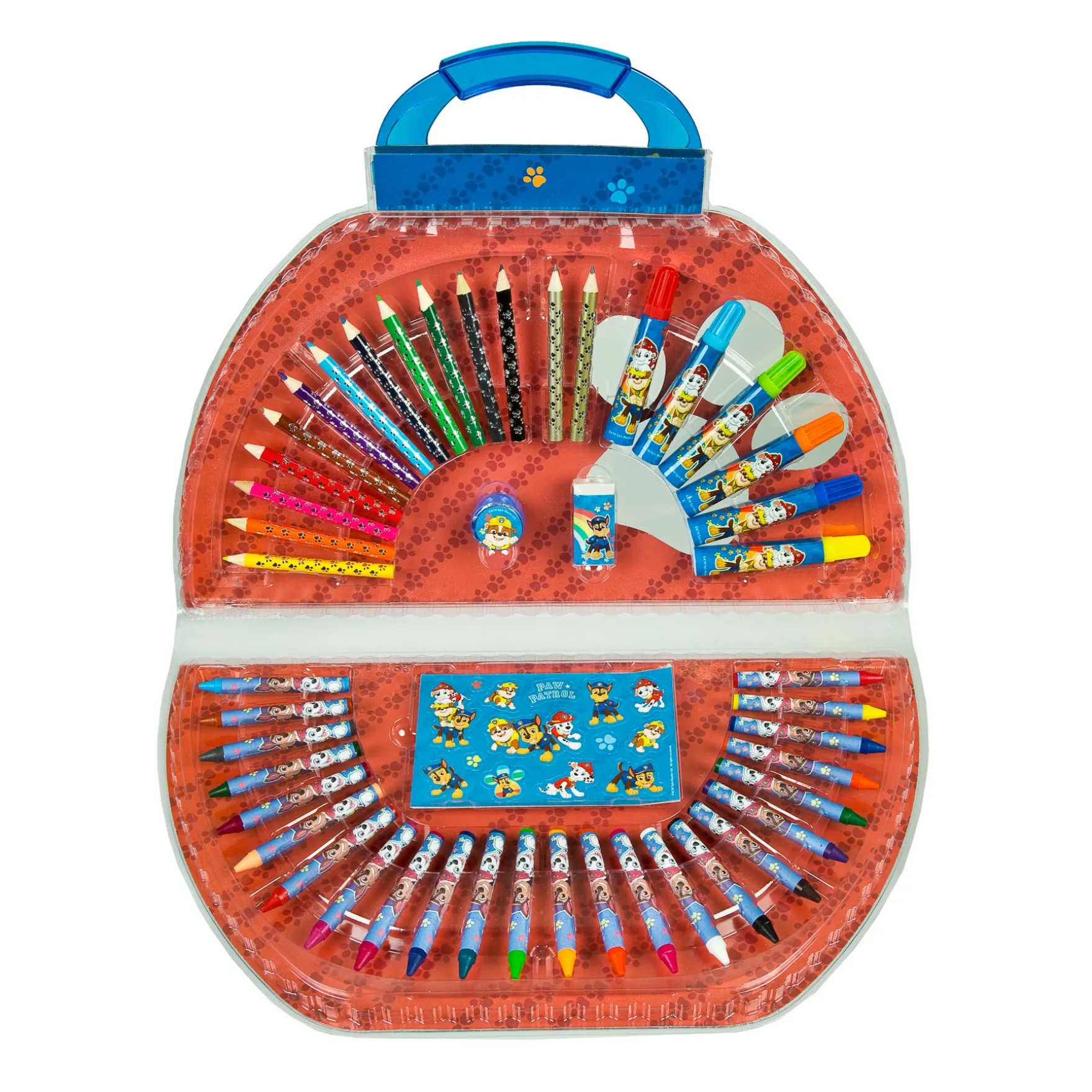 De kleurkoffer is 51-delig en heeft kleurpotloden, stiften en krijtjes om de mooiste kleurplaten mee in te kleuren. Daarnaast heeft de koffer ook stickers om je tekening helemaal mee af te maken.
