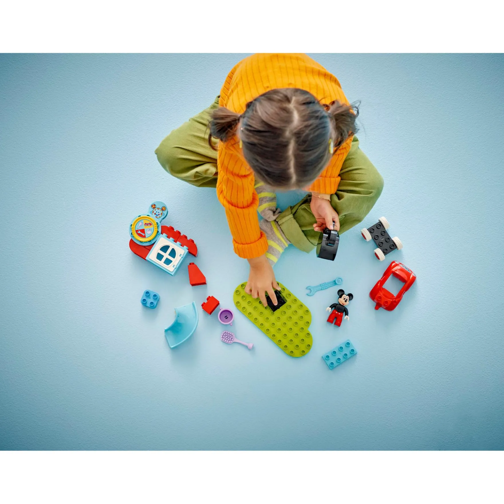 - 2 bekende personages – inclusief een LEGO® DUPLO® figuur van Mickey Mouse, een Toedels computerelement en de rode bouwbare auto van Mickey Mouse uit de Disney Junior tv-serie Mickey Mouse Clubhuis