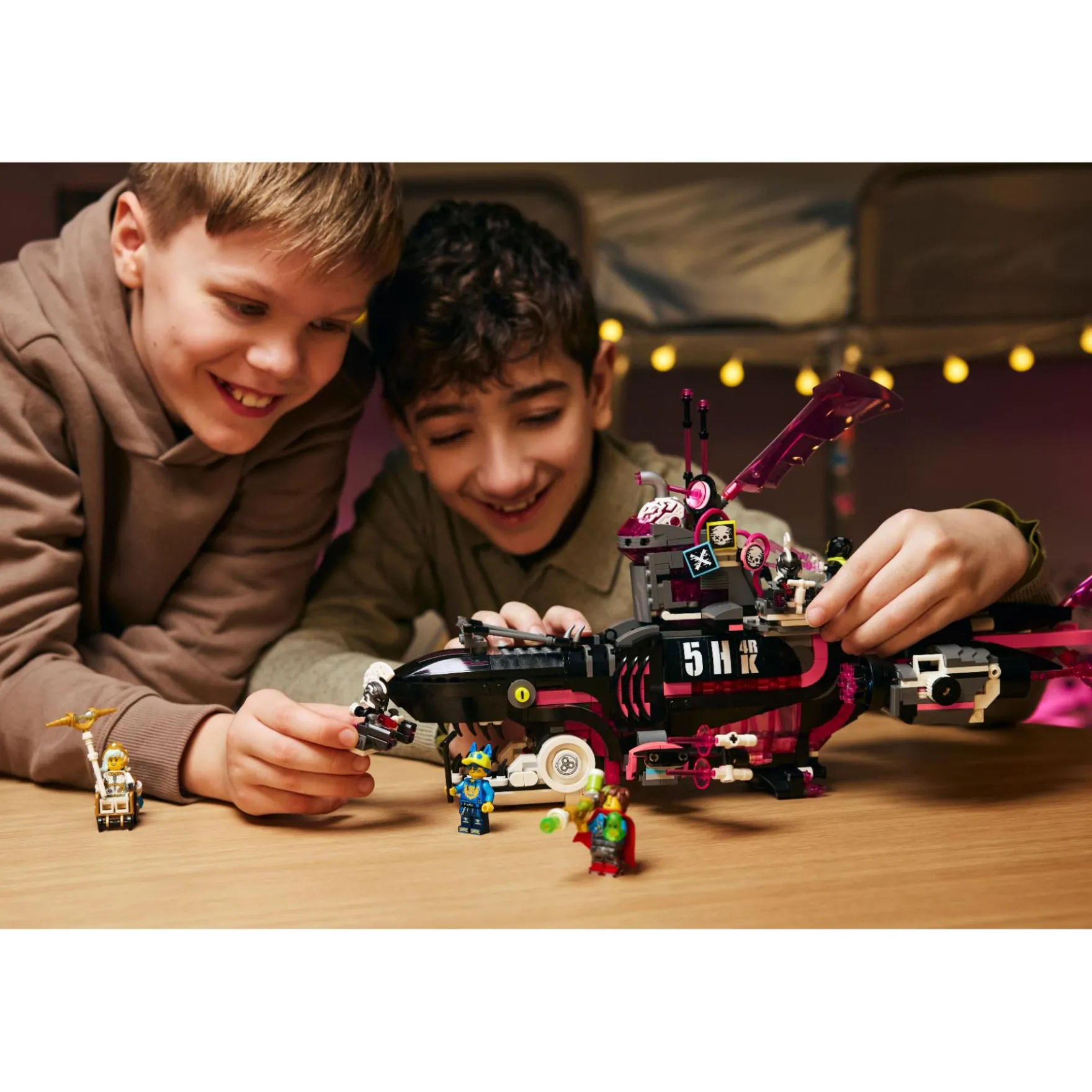 - Speelgoedschip – duik in een wereld vol fantasie met de LEGO® DREAMZzz™ Nachtmerrie haaienonderzeeër bouwset met 2 bouwmogelijkheden voor kinderen vanaf 9 jaar