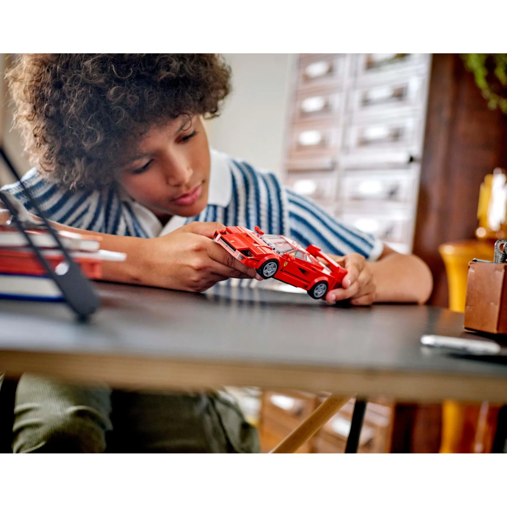 - Authentieke Ferrari details – de LEGO auto beschikt over de opvallende achterspoiler, neus, uitlaatpijpen, velgen en luchtinlaten van de F40, plus interieurdetails zoals de versnellingspook en de rode stoelen