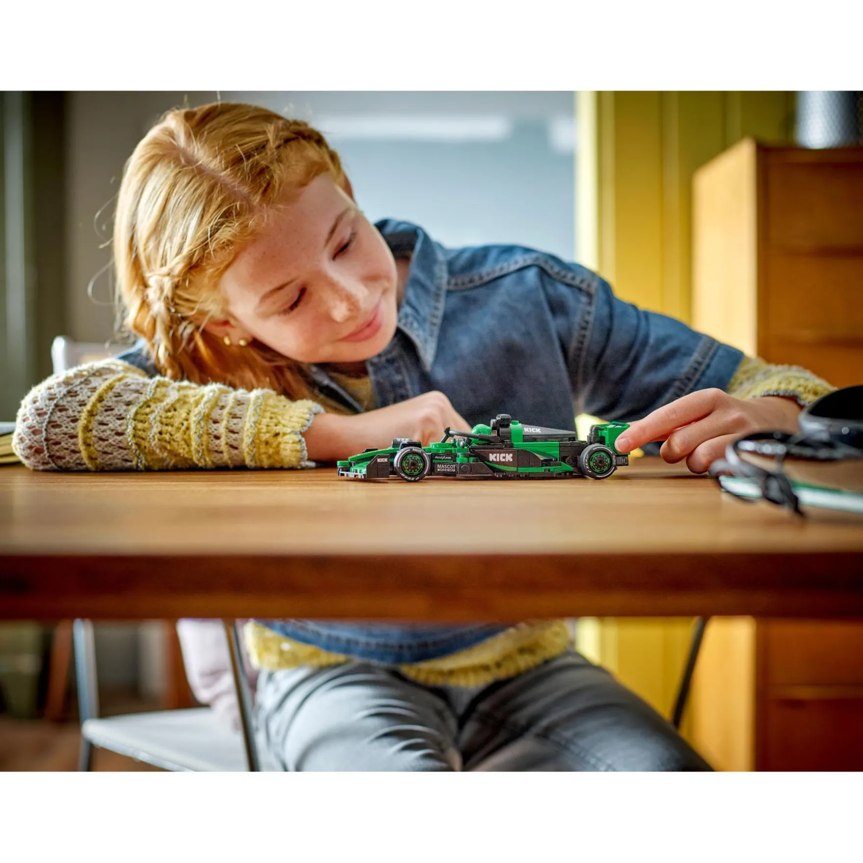 - 1 F1 coureur minifiguur – de LEGO voertuig set bevat een minifiguur van een coureur in een KICK Sauber F1 Team outfit met een helm die kinderen in de cockpit kunnen plaatsen om spannende F1 races te spelen