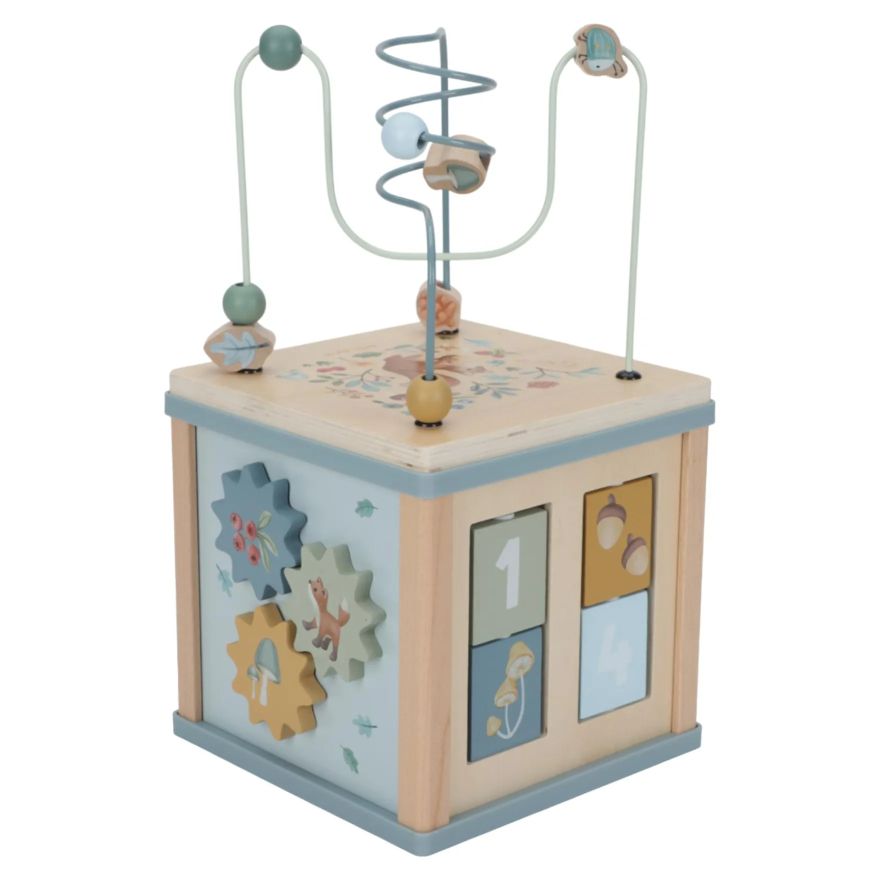 Gemaakt van FSC-gecertificeerd hout, is deze activiteitenkubus niet alleen duurzaam maar ook veilig voor je kleintje. Het Forest Friends thema brengt de magie van het bos tot leven in de speelkamer. Met deze veelzijdige kubus zal je kind volop genieten van het ontdekken en leren!
