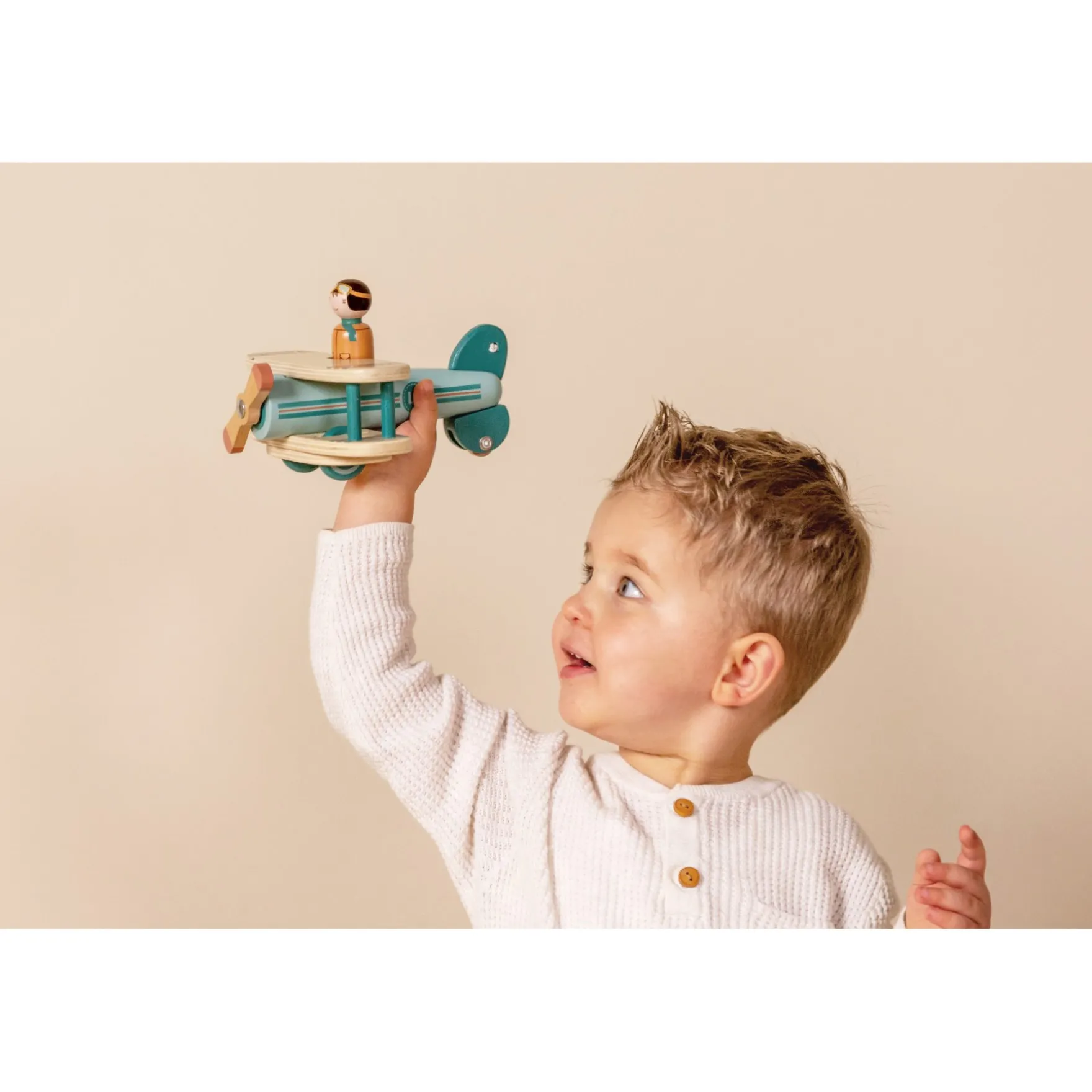 Gemaakt van stevig, duurzaam hout en afgewerkt met kindvriendelijke verf, is het vliegtuigje perfect voor kleine handjes en urenlang speelplezier. Het stimuleert de motorische vaardigheden, verbeeldingskracht en creativiteit van je kind terwijl ze hun eigen avonturen bedenken.