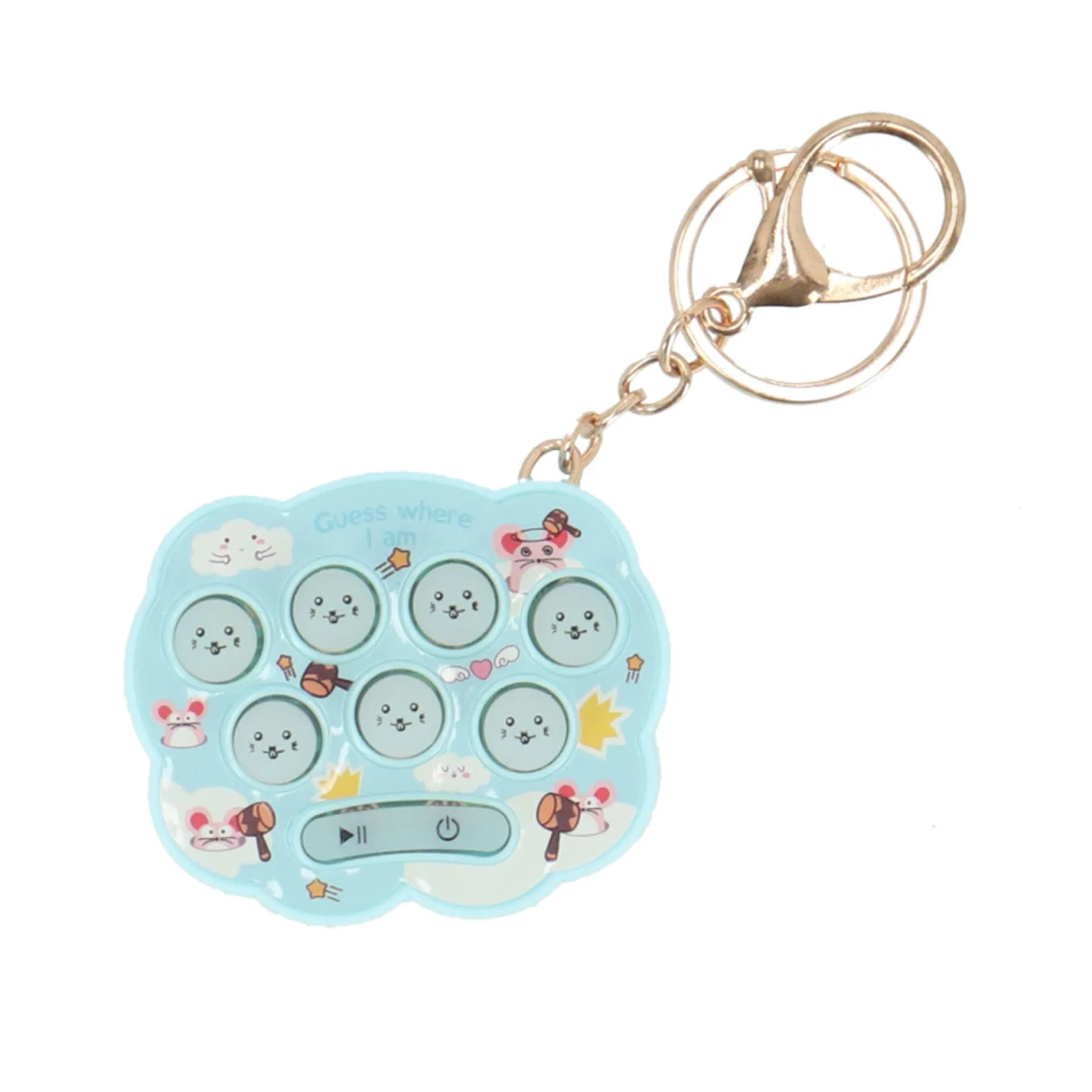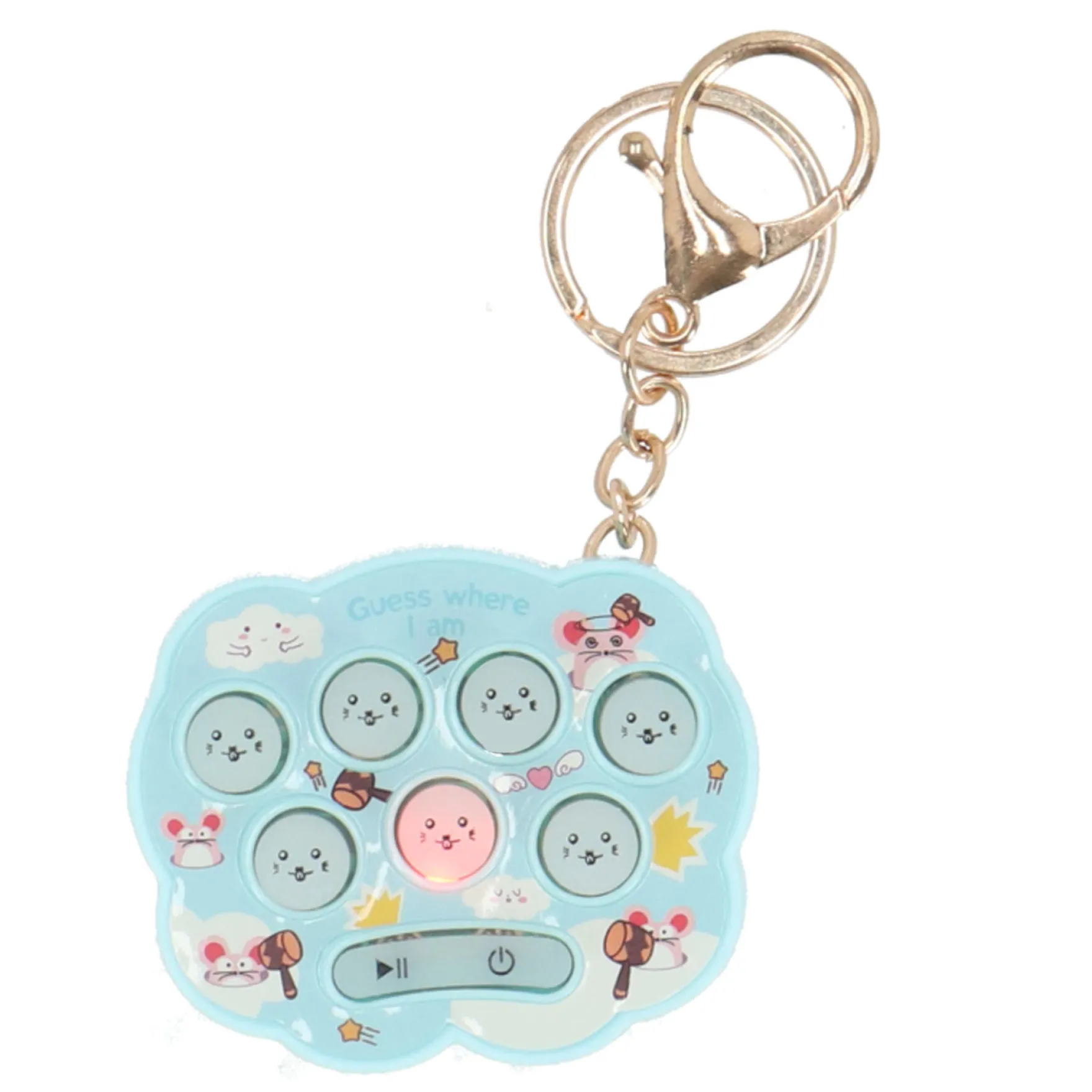 Mollen Meppen is nu beschikbaar in een handig sleutelhanger-formaat! Test je reflexen door de mollen zo snel mogelijk in te drukken wanneer ze tevoorschijn komen. Dit leuke spel is geschikt voor kinderen vanaf 3 jaar en ouder en zorgt voor eindeloos plezier onderweg.