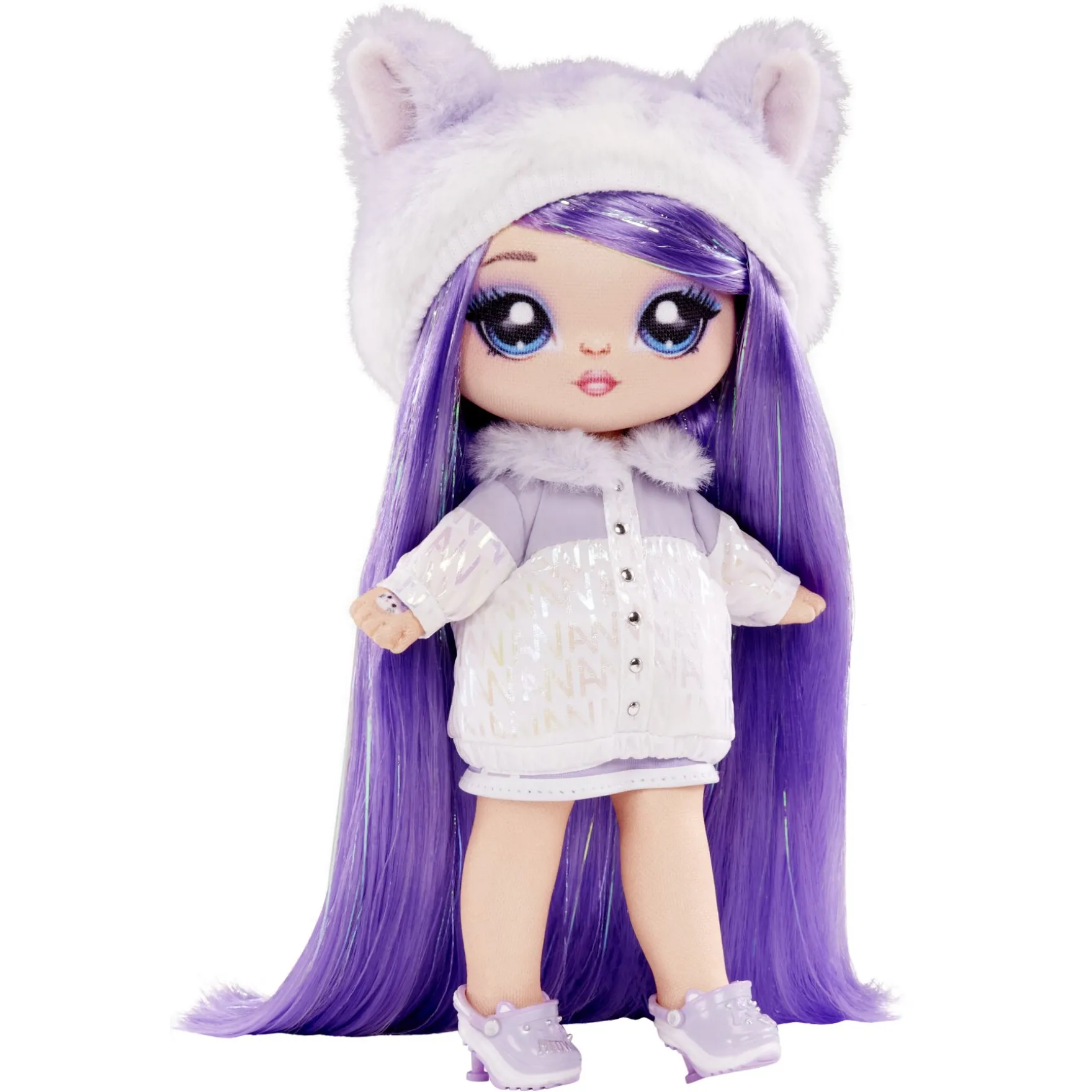 Pak de supermodieuze Na! Na! Na! Surprise Backpack Bedroom Serie 3 speelset van Maya Whiskerfull uit. Het is een 3-in-1 knuffelzachte speelset met een trendy rugzak, een schattige slaapkamerspeelset met kledingkast en een Limited Edition modieuze pop van Maya. De prachtige rugzak is zacht en pluizig en past perfect bij de bijzondere pop. Wanneer je de tas opent, onthul je een slaapkamerspeelset met een uitschuifbaar bed, een functionele kledingkast met laden, kussens, een deken en zelfs kledinghangers. Het is duidelijk dat Maya dol is op paars en katten, aangezien deze fashionista een schitterende paarse jas draagt en bijpassende kattenmuts. Zelfs de koffer heeft schattige kattenoren!