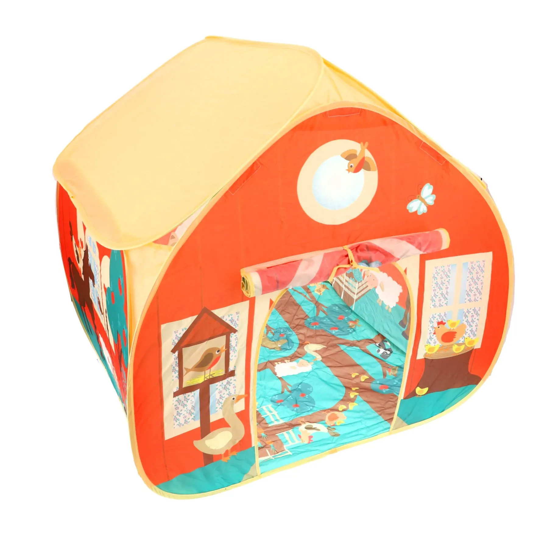 Stap binnen in een wereld vol avontuur en plezier, waar de levendige boerderijscène je uitnodigt om te spelen en te verkennen. De tent is gemaakt van 100% polyester en is super eenvoudig op te zetten. In een mum van tijd tover je een magische plek tevoorschijn waarin de verbeelding van je kind kan bloeien.