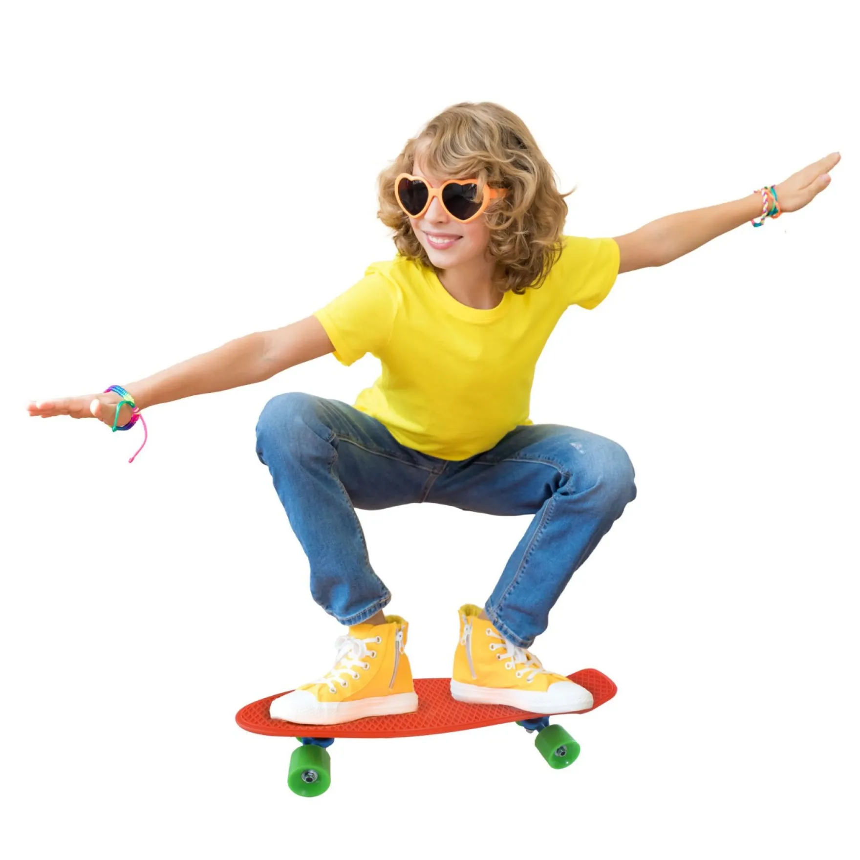 Met een handig formaat van ongeveer 56 cm, is dit skateboard perfect geproportioneerd voor de kleine voetjes van kinderen, waardoor ze moeiteloos kunnen cruisen en rollen. Maar het beste moet nog komen – met een scala aan levendige kleuren om uit te kiezen, voegt de willekeurige kleurkeuze een element van verrassing toe aan elke bestelling!