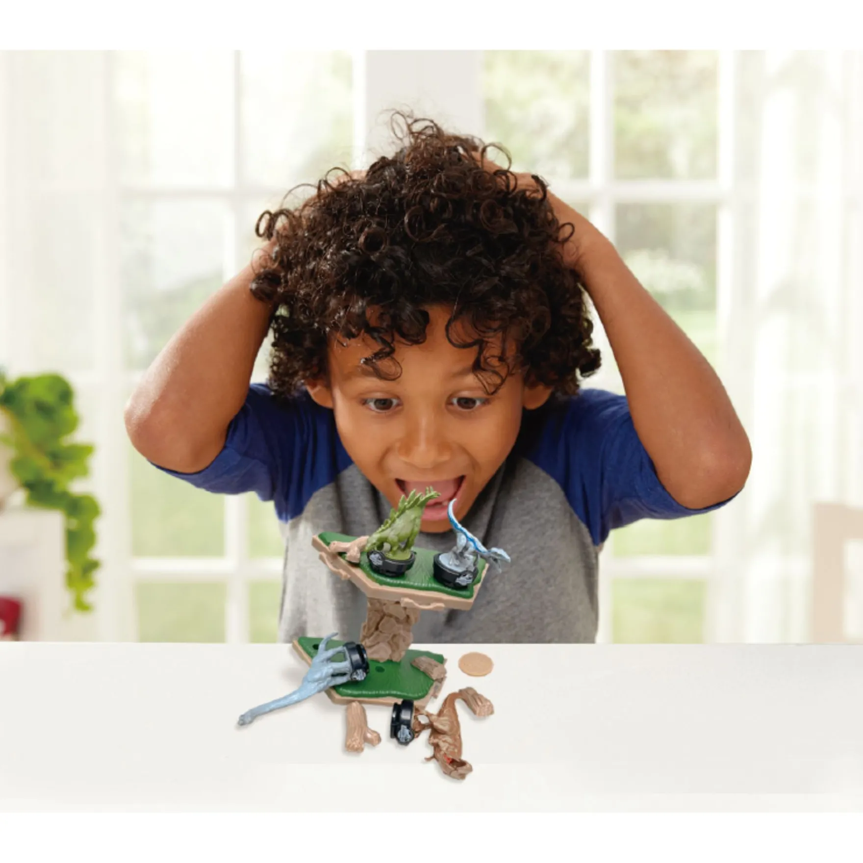 Jurassic World Island Quake Balancing – Een spel vol spanning en avontuur! Kun jij de dino’s op tijd in veiligheid brengen? De medaille geeft aan welke dinosaurus je moet plaatsen. Maar pas op! Het eiland staat op instorten en elke verkeerde beweging kan ervoor zorgen dat de dino’s vallen. Zet jouw dino’s voorzichtig neer en houd het eiland in balans!